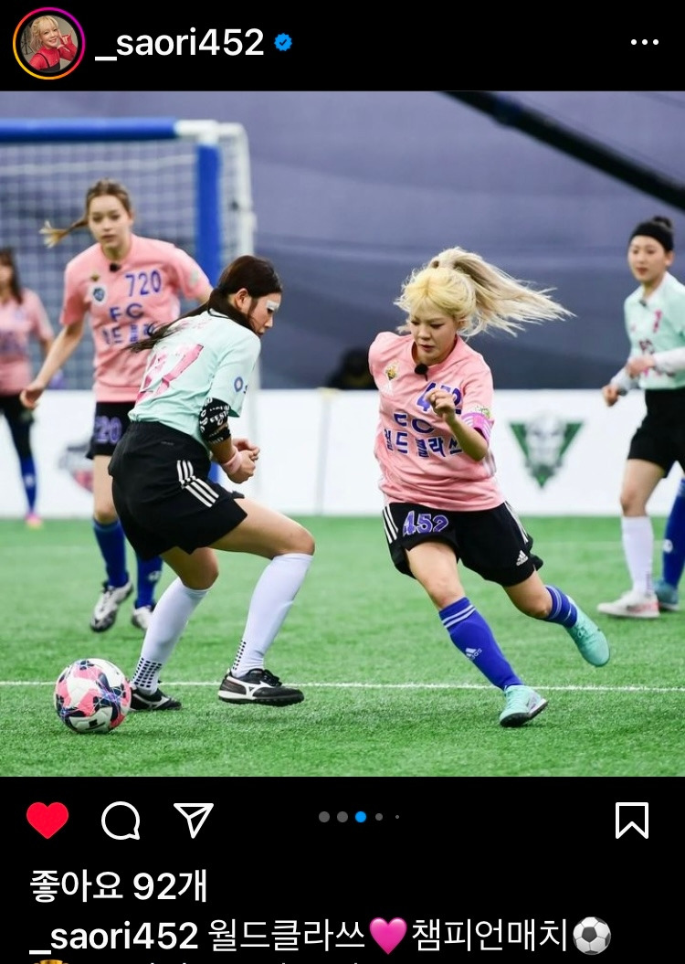 짝지랑 같이 보는 유일한 예능이, 골때리는 그녀, 나는솔로, 나솔사계(나는 솔로, 그 후 사랑은 계속된다)인데, 몇일전에 월드클라쓰가 창단 첫 우승을 하는걸 봤다. 늘 결승앞에서 넘어져서 2등 3등만 했었는데….드디어 우승이라니. 사오리는 유일한 원년멤버인데, 우승하는 모습을 보니 나도 눈물이 났다. 신입멤버들로 바뀌고 나서도 각각 위치에서 모두 잘하니깐 다른팀보다 월등해 졌다. 골키퍼는 황금손이고, 수비는 수비대로 꼼꼼하고, 공격은 나티랑 오리가 환상의 콤비이고. 그림은 발라드림과 챔피언 매치하는 장면을 사오리 인스타에서 퍼왔는데, 아마 월드클라쓰가 이기지 않을까.
