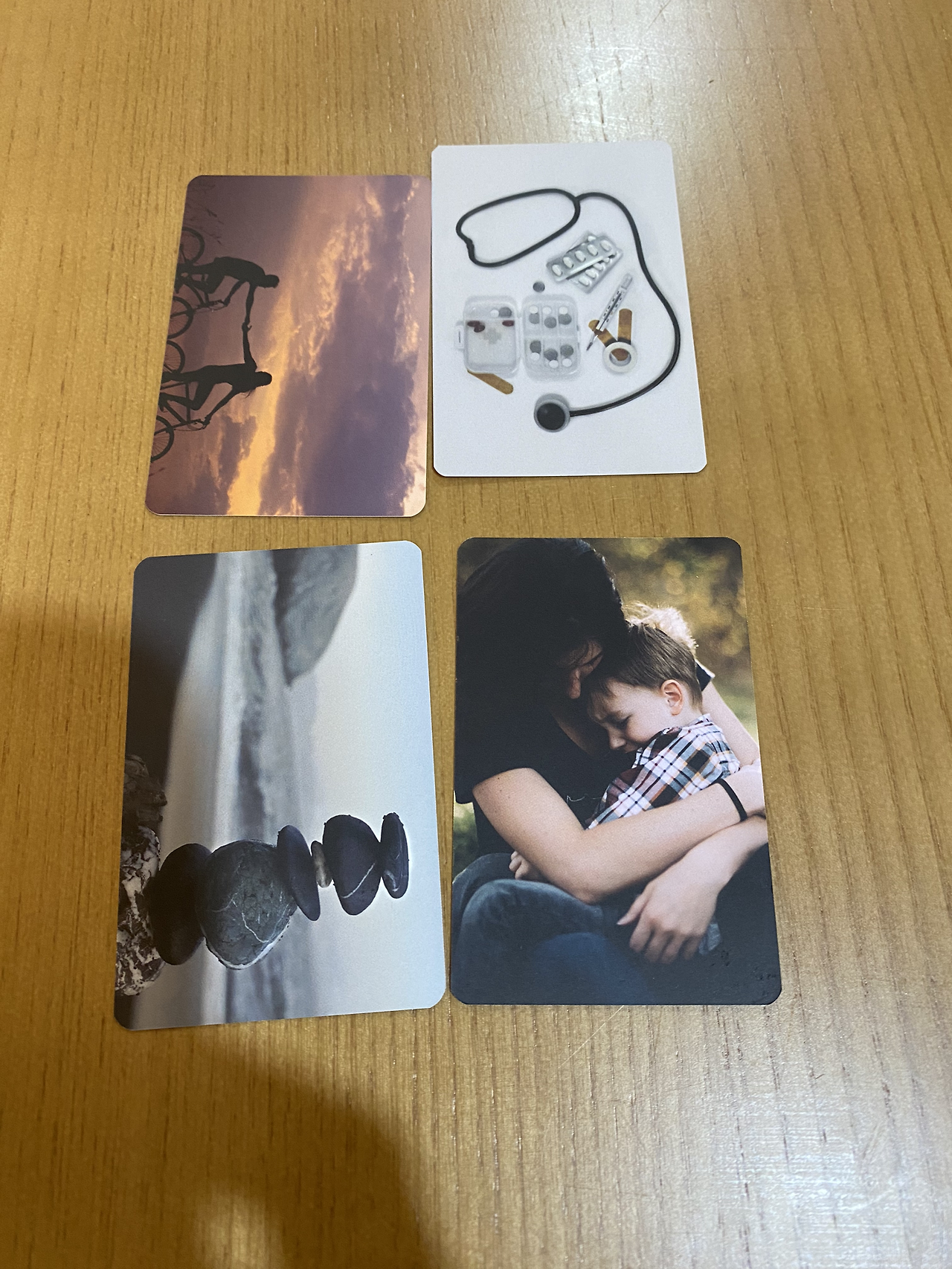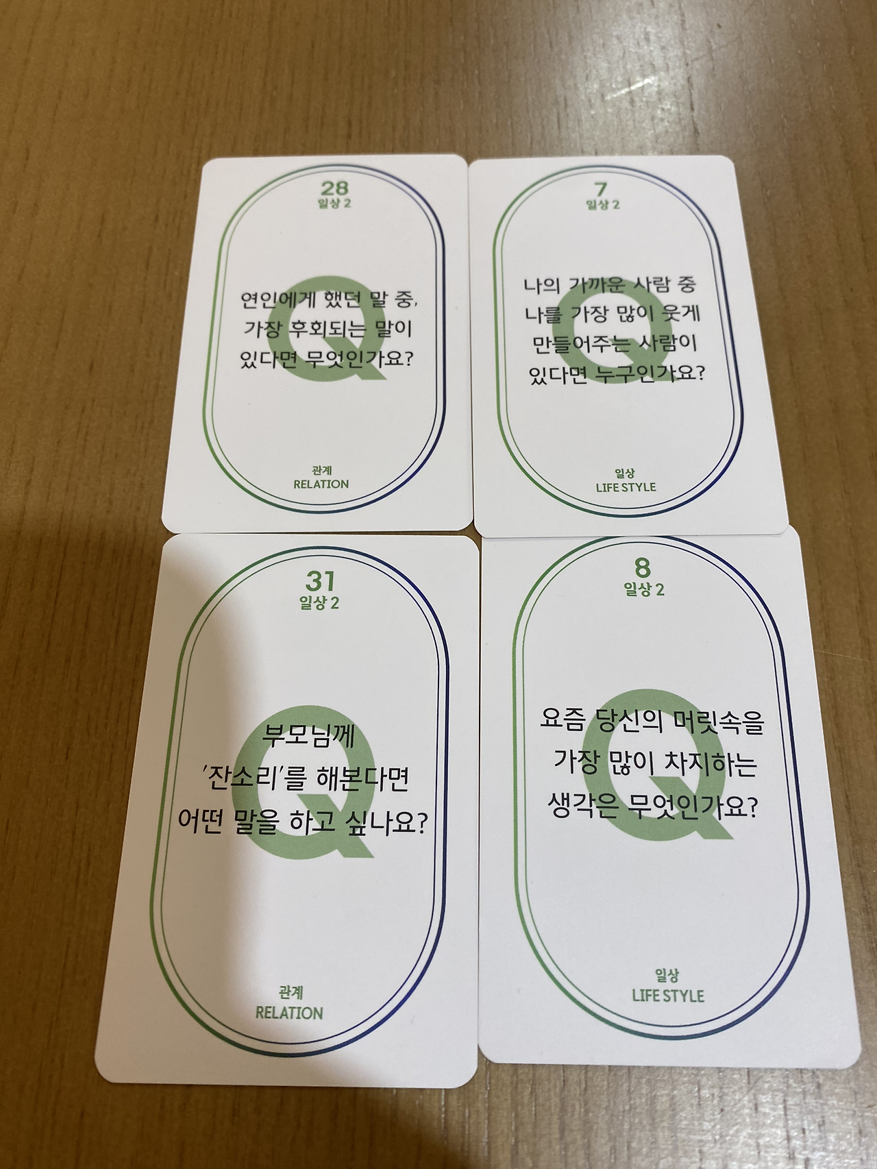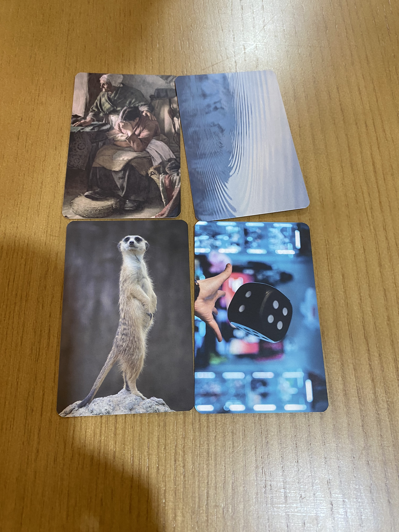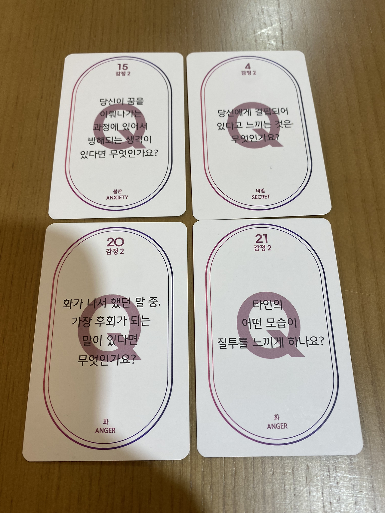 한분이 신청해서 두명이서 이야기를 나누었다. 인원이 적다보니…사람이 여러명일때와 다른 방식으로 이야기를 나누었다. 감정카드와 일상카드를 펼쳐놓고 마음에 드는 카드 두개씩 고르고 그 사진을 고른 이유를 말하고 카드 뒷장의 질문을 읽고 답을 했다. 인원이 많을땐 카드 하나씩 밖에 못했지만, 우리는 카드 네장으로 우리 자신에 대해서 이야기를 했다.