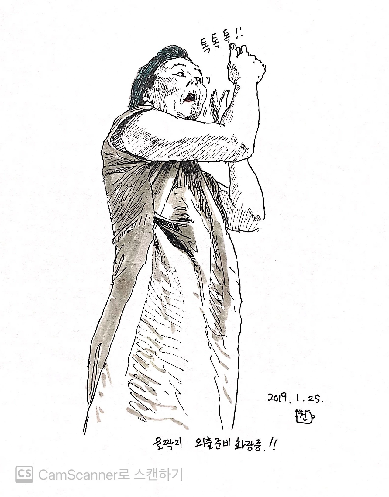 2019년 1월 그림. 외출준비중인 짝지의 화장하는 모습.