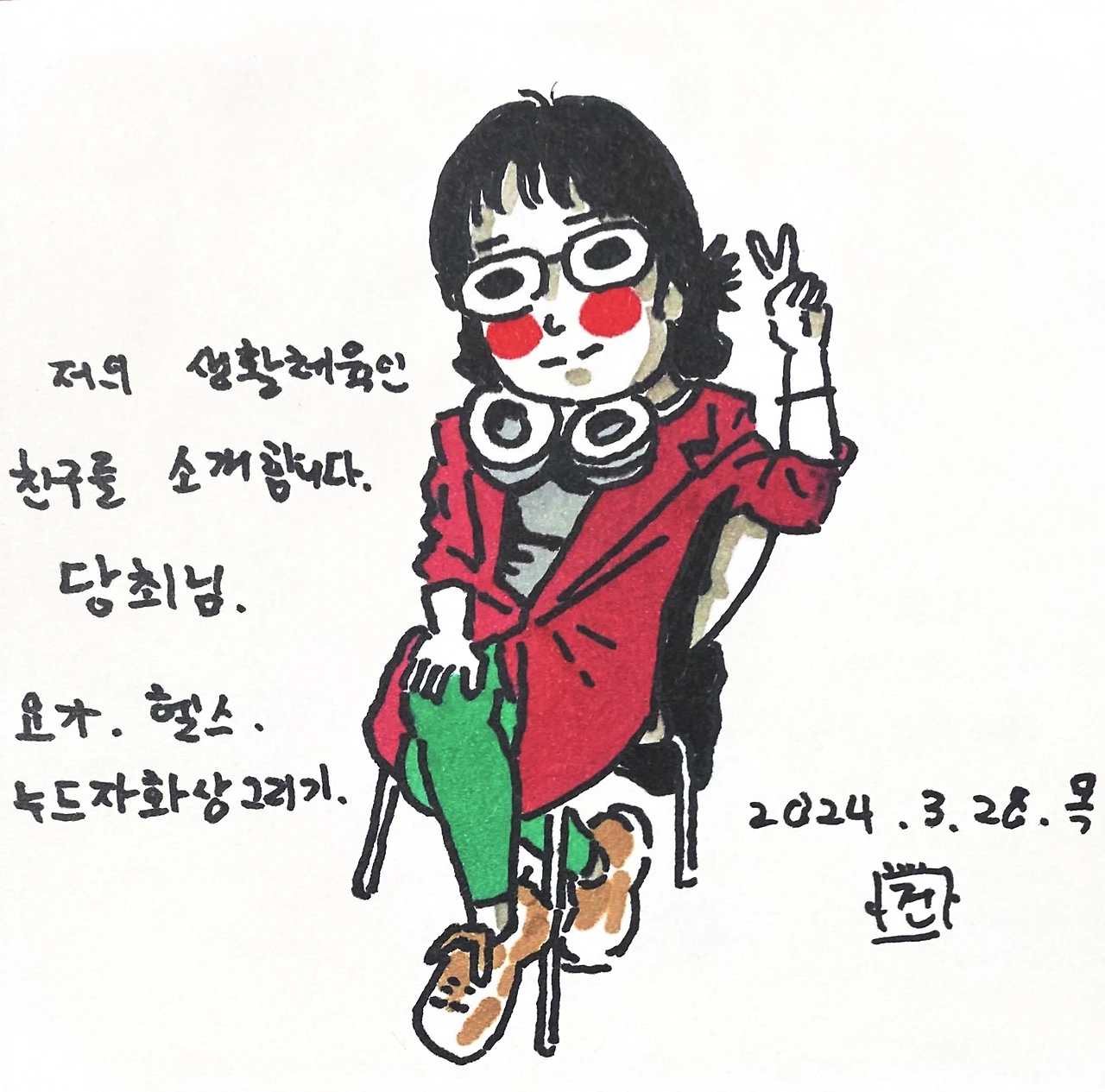 모임에서 우연히 뵙고 가까워진 당최님. 프리랜서로 편집일을 하시고, 요가를 2년정도 수련하고 계시고, 최근에는 헬스도 열심히 하신다. 저번에 경기도에 볼일이 있어 올라가는길에 시간을 맞춰 당최님이 운동하시는 헬스장에서 같이 운동을 한 적도 있다. 밤에는 누드자화상 작업을 파스텔로 꾸준히 해오시는데, 그 작업도 좋아한다. 나도 당최님 따라 파스텔작업을 해보려고 집에서 그려보니 파스텔 똥과 가루가 많이 생겨 조금 그려보다 말았다. 인스타 스토리에서 본 옷 색감이 이뻐서 캡쳐해서 그려보았다. 무언가를 할때 동료가 있으면 힘이 난다. 지금은 원고 작업때문에 잠시 생활체육인 생활을 못하고 있지만, 5월부터는 다시 복귀할 것이다.