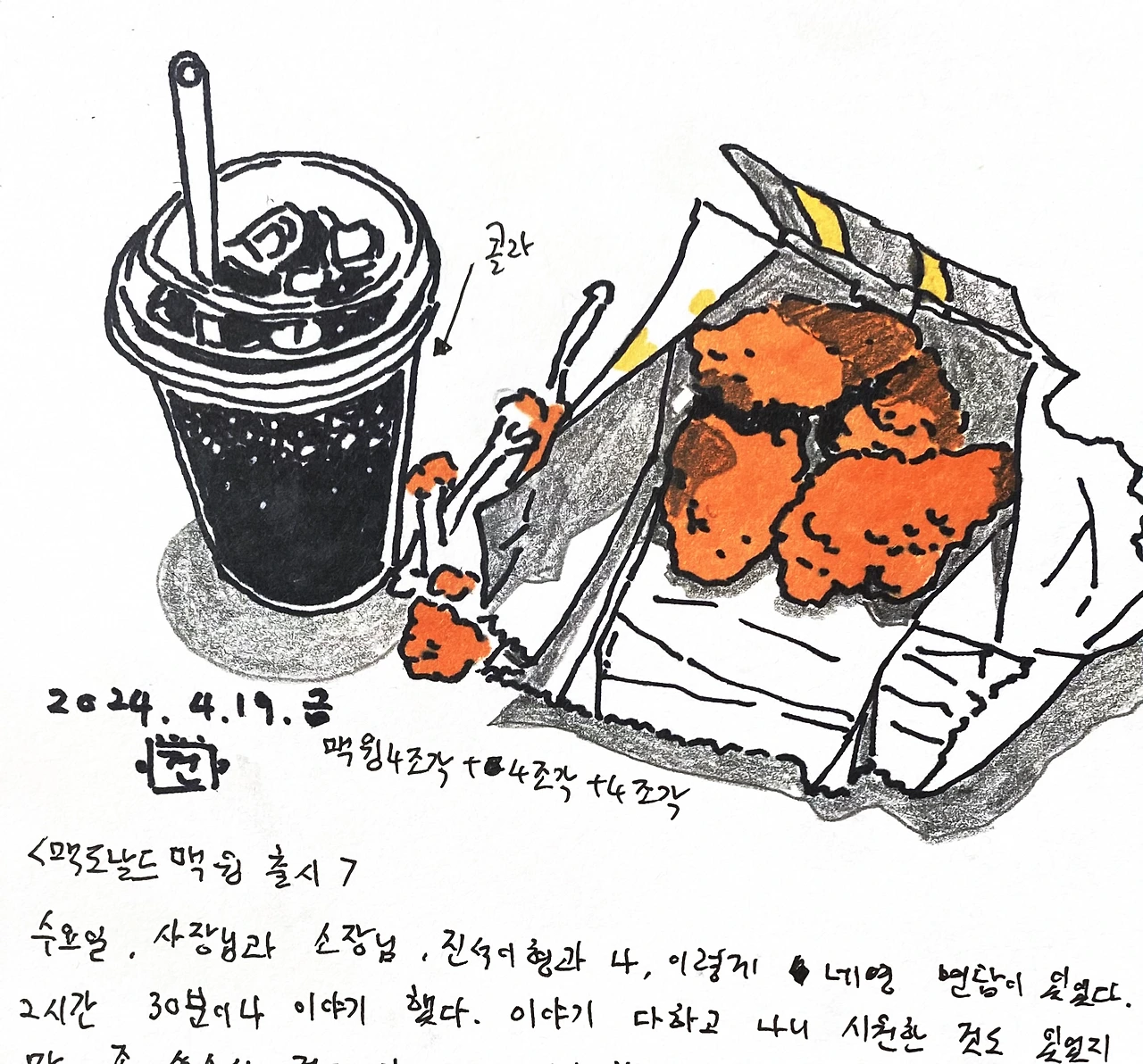 수요일 사장님과 소장님, 진석이형과 나, 이렇게 네명 면담이 있었다. 2시간 30분이나 이야기 했다. 이야기 다하고 나니 시원한 것도 있었지만, 좀 씁슬한 것도 있었다. 2시간 반이나 이야기하고 나오니 기분도 다운되고 기운이 없었다. 나를 위해 배를 좀 채워야겠다 싶어서 맥도날드에 새우버거를 먹으러 갔다. 그런데, 왠걸 여름이 다가온다고 맥윙이 출시된거 아닌가. 콜라 포함 세트 맥윙 네개를 먹었다. 그런데, 아직 내 기분이 올라오지 않아 또 네조각을 먹었다. 오늘은 좀 더 날 위해 먹어줘도 되겠다 싶어서 다시 네조각을 먹었다. 이제 좀 기운이 났다. 집에와서 소장님과 사장님에게 2시간 30분이나 내 이야기 들어주고 이야기 할 기회를 주셔서 감사하다고 문자를 드렸다. 사장님에게서 문자가 왔다. “박조건형님은 우리 회사에 중요한 분입니다. 힘내시고 서로 오해없이 자주 소통했으면 좋겠습니다. 감사합니다 ”