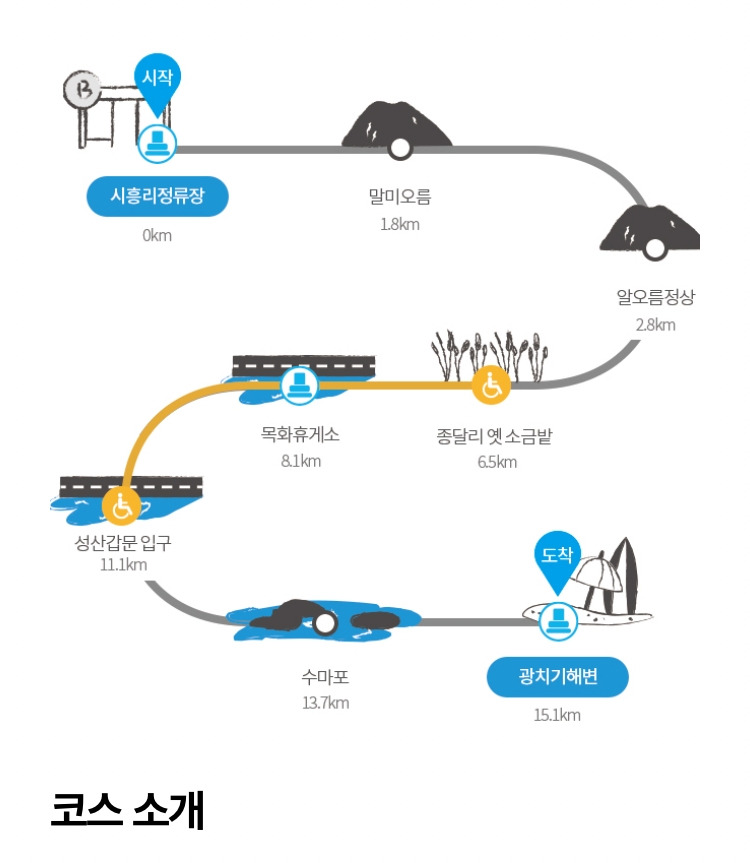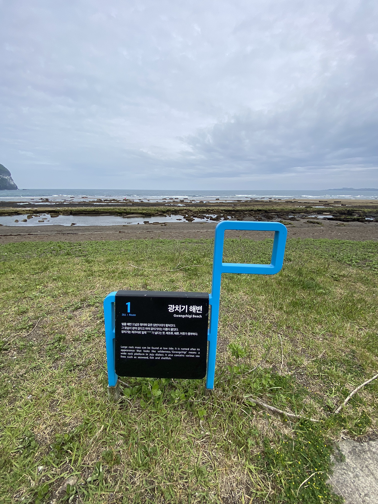 목적지는 광치기 해변이었고, ‘광치기’는 제주도 언어라고 하는데 참 멋진 해변이었다. 목적지에 도착해 도장찍는 걸 찾는데 보이지가 않았다. 바위 조형물 안에 숨어 있어서 참신했다. 마지막 도장을 찍고 올레 1코스를 마쳤다. 택시를 부를려고 했는데, 마침 택시에서 내리는 손님이 있어서 바로 택시를 타고 1코스 출발지 시흥에 도착했다. 10시 20분에 출발해서 오후 3시 20분쯤 도착했으니 걷기에 부담없는 거리였고, 비가 오기전이라 날씨가 흐려 걷기에 좋았던 날씨였다.