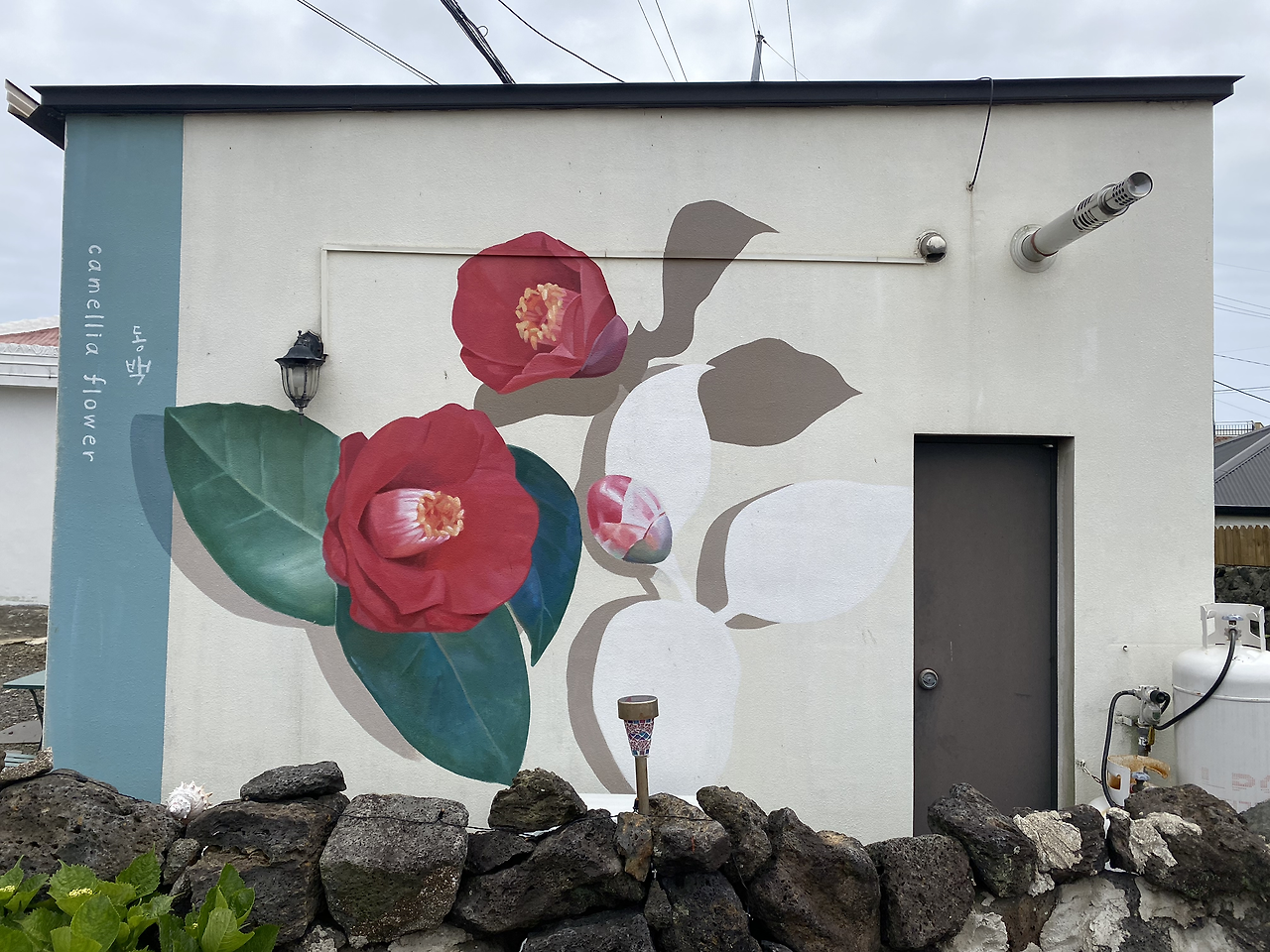 올레 1길은 초반에 작은 오름 두개를 걷는 것 말고는 다 평지를 걷는 코스이다. 중간에 종달리 마을을 지나가는데, 내가 지금까지 본 마을 벽화중에 제일 멋진 벽화를 볼 수 있었다. 약간 파스텔 톤의 식물 그림들. 벽화를 하더라도 이렇게 통일성있게 하고, 벽화를 그리는 작가에게 작품의뢰비를 충분히 많이 주면 이런 멋진 작품을 마을 벽화에서 만날수 있지 않을까. 전국에 많은 수의 벽화가 있지만, 앞으로 마을 벽화를 그릴 계획이 있는 곳에서는 이곳을 롤모델 삼아도 좋지 않을까 싶었다. 벽화가 아니라 그냥 하나의 큰 그림이자 작품 같았다.