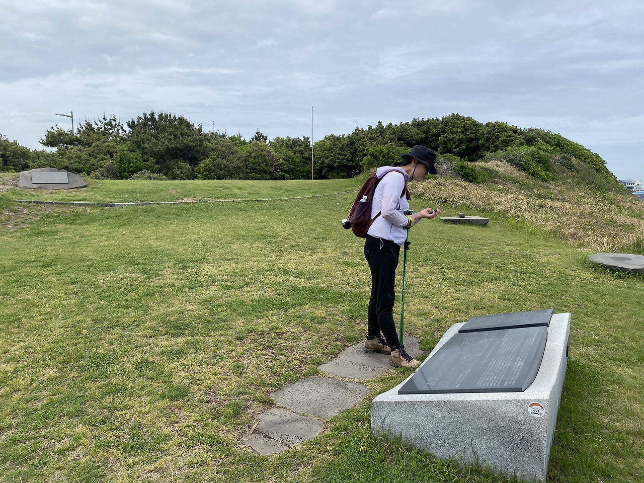성산 일출봉을 옆에서 돌아가는 해변에서 보는 맛이 있었다. 사람들은 오로지 그 입구에서 올가는데만 몰려 있었다. 우리는 아무리 유명한 데라도 사람이 많으면 일단 패스. 그런데, 성산일출봉 입구에서 아이스크림을 먹었는데 너무 맛있었다. 처음에 한라봉 아이스크림이 맛있어서 우도땅콩 아이크림 까지 하나 더 먹었다. 옆에서 먹는 관광객의 추천으로 땅콩아이스크림까지 먹었지만, 나는 한라봉 아이스크림이 훨씬 맛있었다. 입에 넣으면 바로 녹아버리는 맛. 성산 일출봉을 지나 목적지에 다와가니 4.3을 기리는 흔적들을 만날수 있었다. 제주 어디를 가나 4.3을 만날 수 있다. 성산일출봉 앞바다에 끌려가서 억울하게 죽어야 했던 제주도민들을 잠시 생각해 보았다.