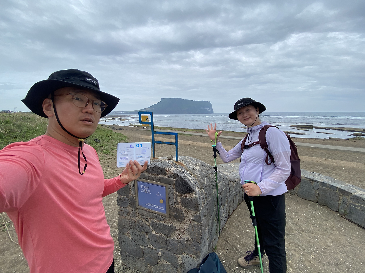 작년 가을 추석에 설혜씨와 함께 모슬포항에서 출발하는 11, 12코스를 걸었고, 오랜만에 짝지와 올레길을 걸었다. 집이 평대라 근처인 성산에서 출발하는 1코스를 걸었다. 1코스라 그런지 올레길을 걷는 사람을 많이 만났고, 올레 1길 출발하고 얼마 되지 않아 올레길센터가 있길래 수첩을 구매하고 출발지 도장을 찍고 중간 도장 찍고 도착지 도장까지 , 총 세개를 찍었다.
