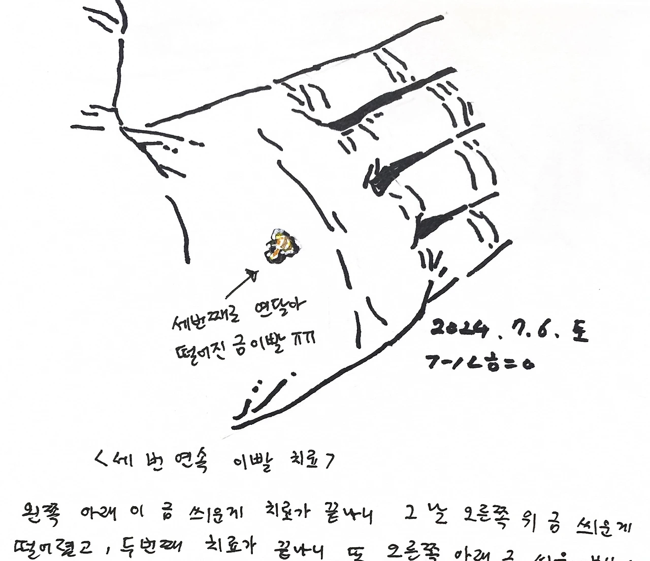 왼쪽 아래 이 금씌운게 치료가 끝나니 그 날 오른쪽 위 금 씌운게 떨어졌고, 두번째 치료가 끝나니 또 오른쪽 아래 금 씌운 부분이 떨어졌다. 세 번 다 회사에서 뭘 먹을때 빠졌다. 치료 받을 때가 되었다고는 하지만, 어떻게 이렇게 연달아 쭈루룩 금 씌운게 떨어지는지….목, 금, 토 다 일정이 있어서 결국 월요일에 치료를 받으러 가야 한다. 동료들 앞에서 또 치료비 나가게 되었다고 그렇게 유난떨고 떠벌려도 소장님은 별 말이 없다. 김대리가 그랬다면 이 걱정 저 걱정 다 해줬을텐데 말이다. 참 정이 가지 않는 소장님이다. 내가 찍혀도 단단히 찍혔는갑다. 소장님도 김대리도 이야기를 하면 맞는 말이면 수용을 해주고 인정을 해야 그들에 대한 신뢰가 생길텐데, 늘 해명하고 변명하고 자기 입장만 이야기 한다. 첫 이빨 40만원, 두번째 이빨 50만원, 세번째 이빨은 또 얼마나 들려나…..