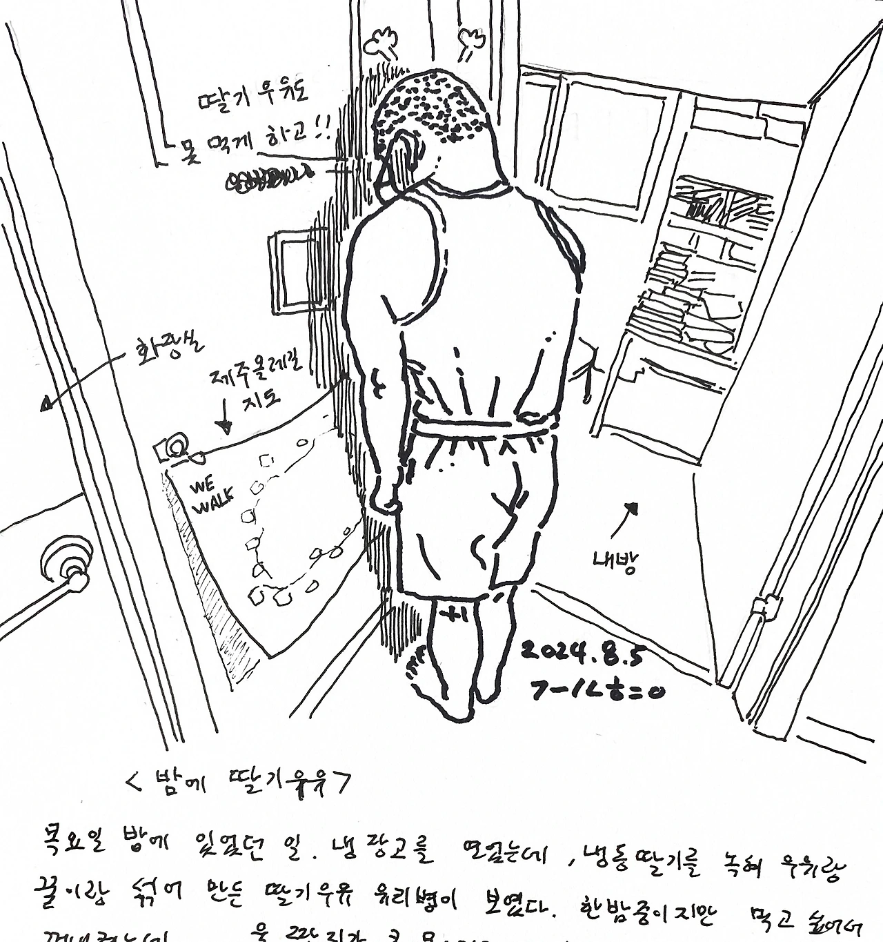 밤에 딸기우유(그림일기)
