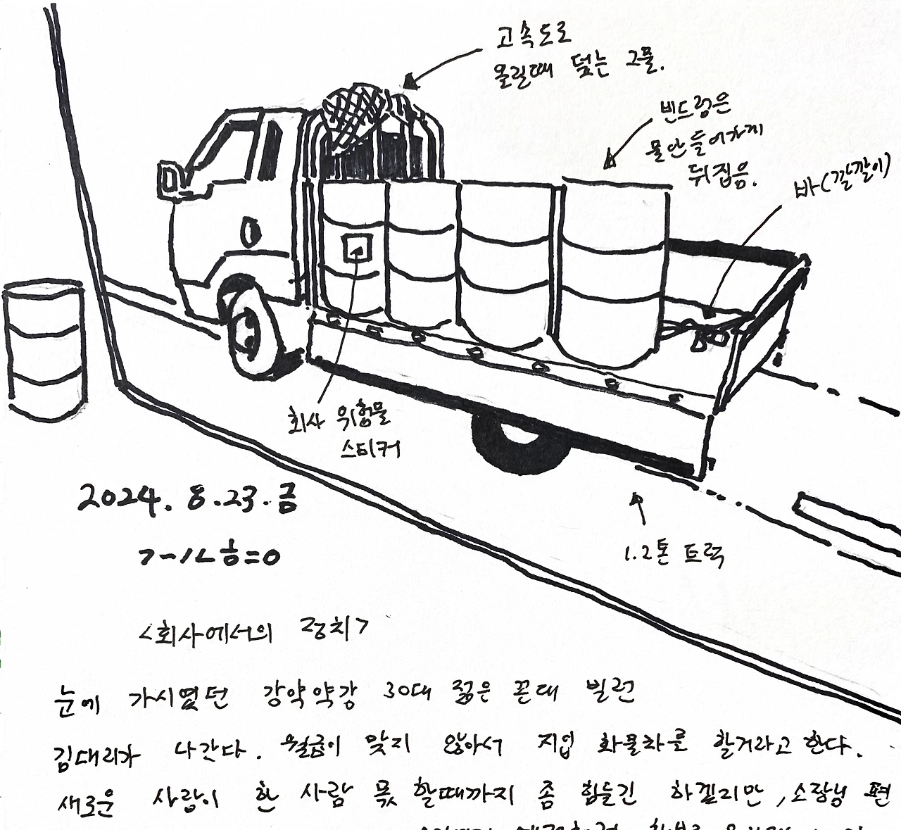 눈에 가시였던 강약약강 30대 젊은 꼰대 빌런 김대리가 나간다. 월급이 맞지 않아서 지입 화물차를 할거라고 한다. 새로운 사람이 한 사람 몫할때까지 좀 힘들긴 하겠지만, 소장님 편 한명이 나가니 소장님도 우리에게 예전처럼 함부로 못하겠지. 김대리가 겸손하고 밑에 사람 말도 잘 듣는 사람이었다면 사장님도 김대리가 나간다고 할때 잡았겠지만, 사장님도 여기저기 들은게 있어서 그런지 잡지 않은 거 같다. 이제 나랑 진석이 형님이 김대리 위치이다. 일만 잘하는게 다가 아니라 이런저런 말이 나오지 않도록 더 신경쓰고 겸손하고 사소한 실수라도 반복하지 않도록 조심해야 한다. 내가 지금은 영업부장(천상천하유아독존 빌런) 눈 밖에 나 있는 상태(거래처 현장에서 영업부장 흉본거 밖엔 없는데, 그게 영업부장 귀에 들어갔나 보다)이니 6개월에서 1년정도는 다른 말이 나오지 않게 신경써야 한다. 거래처에 가서도 우리 회사 이야기는 가능한 하지 않고 어느 정도 거리감을 두어야 한다. 25년 화물차 경력 진석이 형님의 진심어린 조언이다. 말이란 내의도와 달리 이상하게 돌기도 하기에 회사에서 신뢰를 받으려면 회사에서의 정치도 중요하다. 어제도 김대리가 나를 엄청 열받게 하는 일이 있었다. 사람은 잘 안 바뀐다.