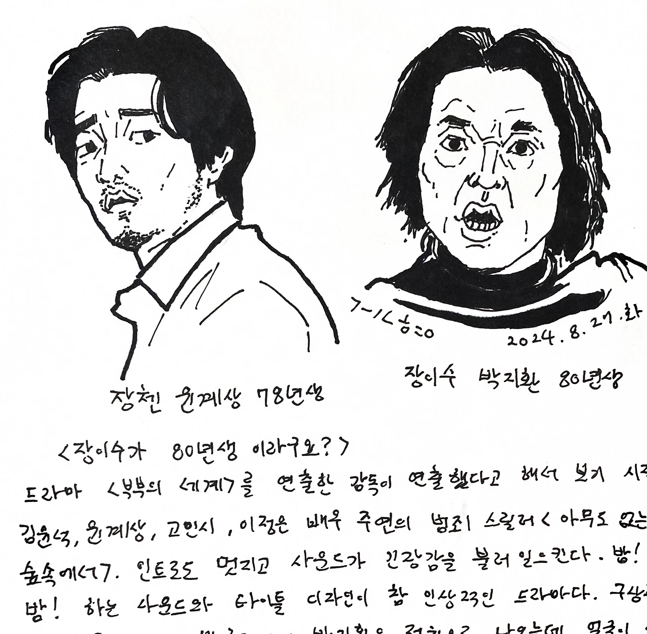드라마 <부부의 세계>를 연출한 감독이 연출했다고 해서 보기 시작한 김윤석, 윤계상, 고민시, 이정은 배우 주연의 범죄 스릴러 <아무도 없는 숲속에서>. 인트로도 멋지고 사운드가 긴장감을 불러일으킨다. 밤! 밤! 밤! 하는 사운드와 타이틀 디자인이 참 인상적인 드라마다. 구상준 역의 윤계상과 박종두역의 박지환은 절친으로 나오는데, 얼굴이 도저히 친구로 보이지 않아서 검색을 해봤다. 그런데, 장이수(박지환)가 장첸(윤계상)보다 두살 동생이란 사실에 놀랐다. 나보다 세살 동생이라니. 상준과 종두를 보면 <범죄도시>가 떠오를수 밖에 없다. 장이수로 뜬 박지환 배우이지만, 그 역할이 너무 임팩트가 있어서 다른 연기를 해도 그 역할이 떠오른다는게 단점. 8부작인데, 4부까지 참고 보다가 보기를 멈췄다. 드라마가 산으로 갔다. 사이코패스인 고민시도 키가 작아서 그런지 카리스마가 크게 느껴지지 않았고 빌런인 성아가 왜 영하(김윤석)에게 이러저리 휘둘리는지 어리둥절했다. 2부 정도까지는 분위기로 먹고 가는데, 3부 부터 각 캐릭터들의 사정들을 장황하게 설명하니 맥이 탁 풀려 버렸다. 윤계상 이야기와 김윤석 이야기가 어떻게 연결이 될까 궁금했지만, 그리 설득력 있을 것 같지 않다. 참고 본 4시간이 아까웠다.