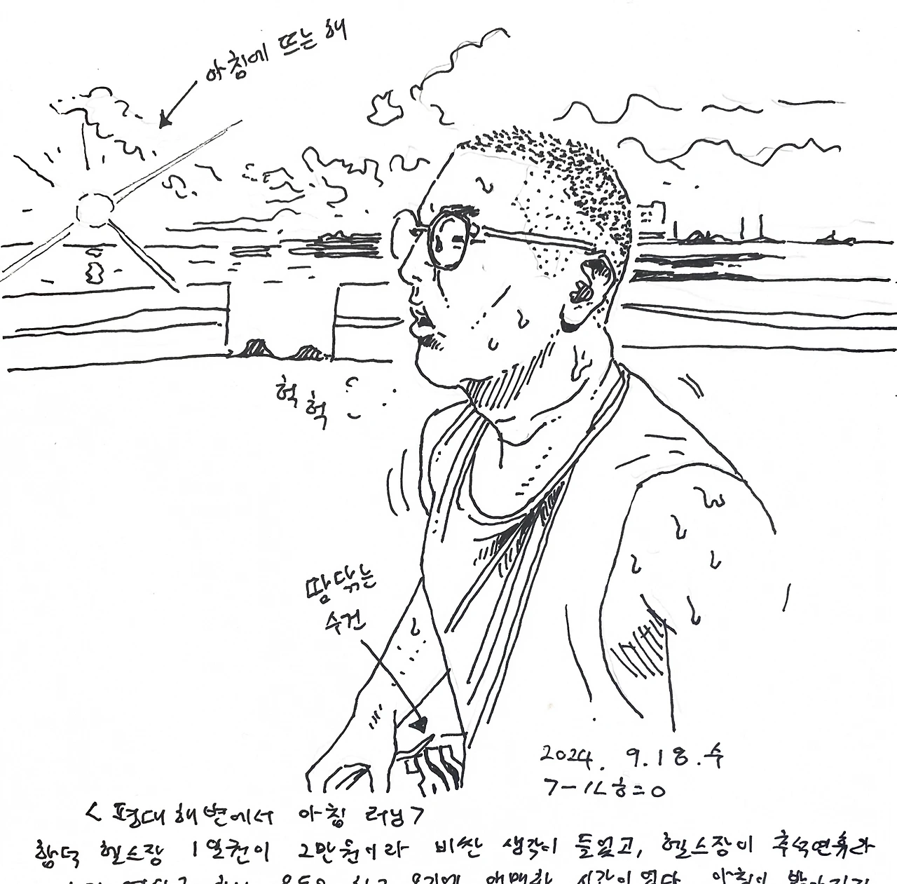 함덕 헬스장 1일권이 2만원이라 비싼 생각이 들었고, 헬스장이 추석연휴라 10시에 연다고 하니 운동을 하고 오기엔 애매한 시간이었다. 아침이 밝아지자 자리에서 일어나 해변으로 뛰러 나갔다. 장모님 집에서 평대 해변까지 1km. 해변을 따라 4km 지점까지 뛰고 다시 반대로 돌아왔다. 중간 이후부터는 다리가 무거워 걷고 싶었지만, 운동이란 생각으로 속도를 줄여 천천히 8km를 뛰었다. 나는 뛰는 속도가 빠른 편이 아니라, 8km 뛰는데 1시간 3분 걸렸다. 집에 돌아와 옷은 세탁기에 넣고 샤워를 하고 40분정도 누워 피로를 풀었다. 최강야구를 보다가 11시에 장모님과 짝지와 차를 타고 제주시로 나왔다. 장모님은 장 볼것들이 있어서 마트 여기저리를 들릴 예정이고, 나는 한라 수목원 앞 카페에서 시간을 보내고 있다. 오늘은 양산으로 돌아가는 날.