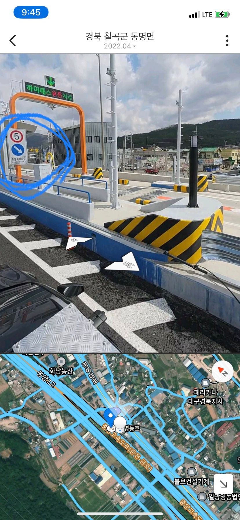 칠곡을 지나갈때 하이패스를 통과하는데, 문뜩 뭔가 느낌이 이상했다. 혹시 내가 화물하이패스를 통과하지 않은건 아닌가 하는 생각이 문득 들어서 핸드폰 켜서 바로 내위치를 찍고 화면 캡쳐 했다. 나는 동명동호 TG를 방금 통과한걸 알았고, 3km정도 가서 동명휴게소에 주차를 했다. 동명동호 TG를 검색해 도로화면 컨셉으로 바꾸어 그 주변을 확인해보니 내가 통과한 하이패스는 일반하이패스였고, 그 옆에 화물하이패스가 있는걸 확인했다. 내가 화물하이패스를 통과 못했구나. (5톤 트럭은 화물하이패스를 통과해야 하고 실수로 깜빡하고 일반하이패스를 통과하면 나중에 경찰에 호출되고 조사받고 법원에 넘겨져 벌금을 물게 된다. 50만원 벌금을 낸 이력이 내겐 있다.^^;;)