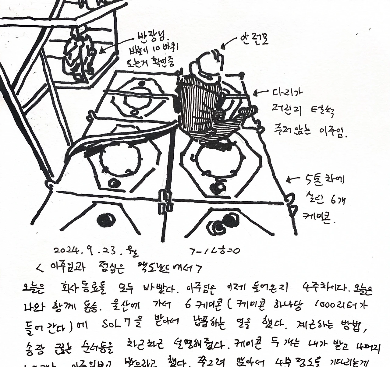 오늘은 회사동료들 모두 바빴다. 이주임은 이제 들어온지 4주차이다. 오늘은 나와 함께 동승. 울산에 가서 6 케미콘(케미콘 하나당 1000리터가 들어간다)에 SOL7을 받아서 납품 하는 일을 했다. 계근하는 방법, 송장 끊는 순서등을 차근 차근 설명해줬다. 케미콘 두개는 내가 받고 나머지 네개는 이주임보고 받으라고 했다. 쭈그려 앉아서 4분정도를 기다리는게 힘들었는지 다섯번째 케미콘에서는 털퍼덕 주저 앉아서 받았다. 나도 종종 그렇게 앉을 때도 있다. 일은 바빠서 밖에서 먹고 들어가기로 했다. 이 회사 다니면서 점심때 맥도날드 먹기는 처음이었는데(5톤차를 댈만한 식당 찾기가 쉽지 않기도 하다), 이주임도 맥도날드 괜찮다고 해서 그리로 갔다. 나중에 회사 동료형님들이 점심 뭐 먹었노? 하길래, 요즘 MZ들은 맥도날드로 점심먹습니다 했다. 니가 무슨 MZ고? 쿠사리 주길래, 40대면 MZ아닙니까? 하고 웃었다.(나는 48, 이주임은 41. 같은 40대로 퉁치려고 했다.^^;;)