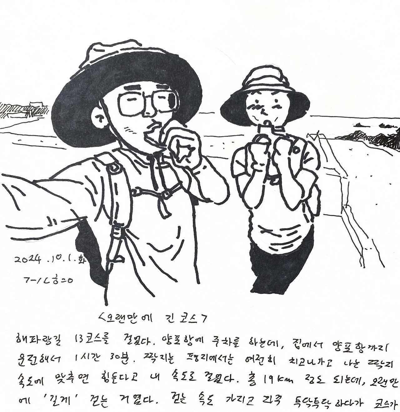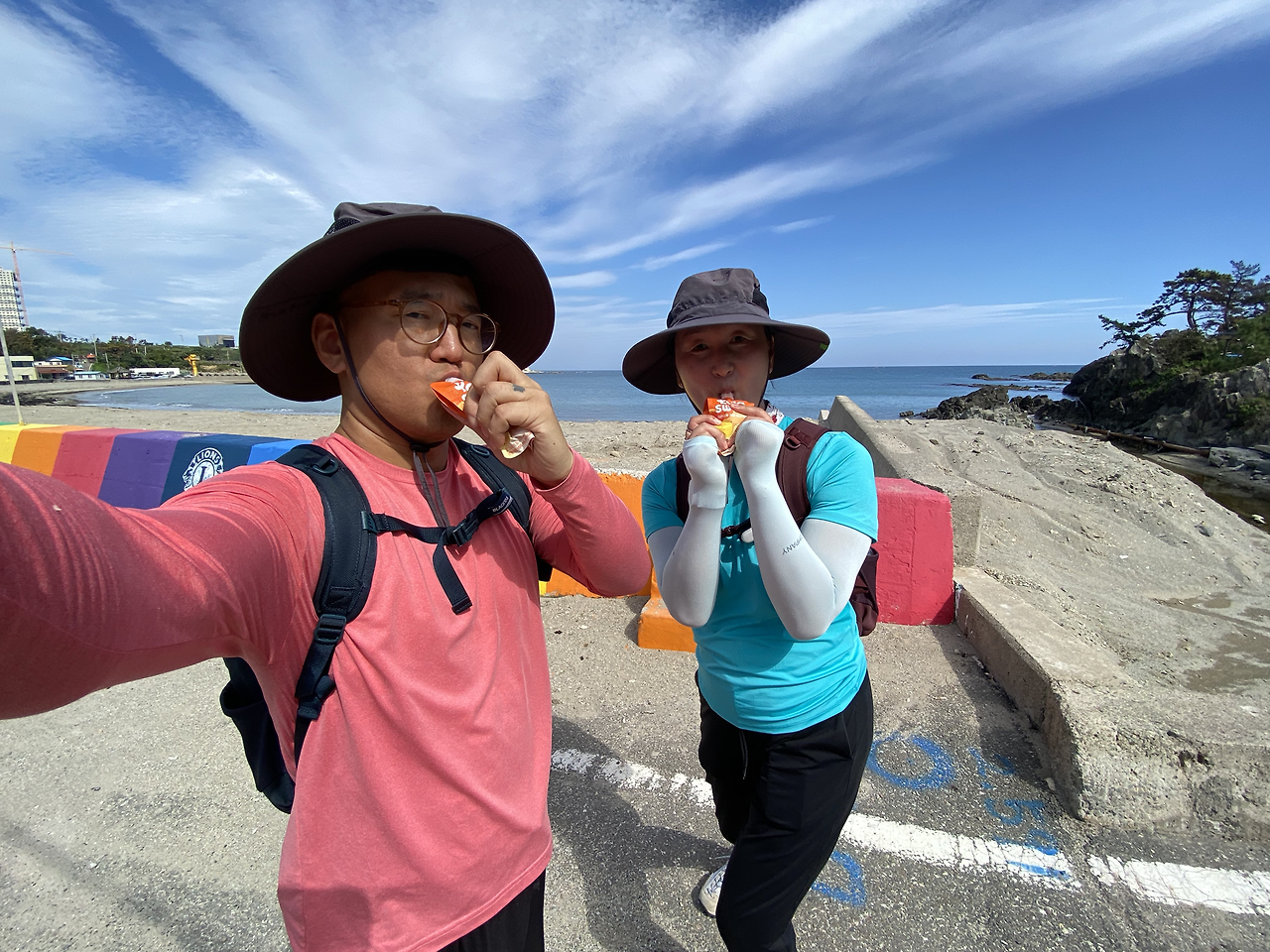해파랑길 13코스를 걸었다. 양포항에 주차를 하는데, 집에서 양포항까지 운전해서 1시간 30분. 짝지는 평지에서는 여전히 치고나가고 나는 짝지 속도에 맞추면 힘들다고 내 속도로 걸었다. 총 19km 정도 되는데, 오랜만에 ‘길게’ 걷는 거였다. 걷는 속도가지고 자꾸 투닥투닥하다가 코스가 끝날 무렵 다행히 잘 협상을 했다. 예전에는 맞춰 걸어줘서 내가 장난으로 그런줄 알았다는데, 평지를 짝지따라 걸으면 빠르고 나는 워밍업이 천천히 된다는걸 오늘 몇번이나 말했는지…13코스는 중간에 도로가로 걷는 구간이 많아서 좀 신경이 쓰였다. 초반에 바닷가에 양수장이 있었는데, 정말 큰 고기들이 많이 있어서 신기해서 영상도 찍고 한참을 구경했다. 중간에 세번정도 쉬고 6시간 30분정도 걸렸다. 구룡포항에서 택시타고 돌아오는데, 구간이 기니깐 택시비가 2만 3천원이나 나왔다. 그래도 타야지 어쩌겠어. 13코스 정도 올라오니깐 이제 집에서 차를 몰고 오가는 시간이 많아 많이 피곤했는데, 짝지가 운전을 반반 나누어 해준다고 해서 돌아올때는 차안에서 좀 푹잤다. 오늘도 다투지 않고 잘 걸은 우리부부에게 칭찬의 박수를!!