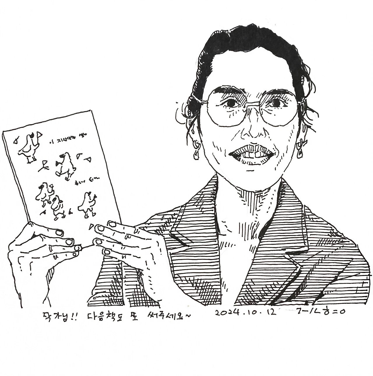 작가님의 책이 너무 좋았을때, 그림을 그려 액자에 넣고 북토크때 그림액자 선물을 드리는 편이다. <이 지랄맞음이 쌓여 축제가 되겠지>의 조승리 작가님의 책이 너무 좋았다. 울컥해서 눈물이 나는 장면도 있었다. 12월달에 할 우울증자조모임의 책으로 미리 선정해 두기도 했다. 조승리 작가님이 시각장애인이다 보니 그림선물을 해도 되나 조심스럽게 고민이 되었다. 책속에 시각장애인 친구 세명이서 첫 해외여행을 가는 에피소드가 있다. 눈이 보이지 않는다고 보고 싶은 욕망이 없는 것 아니다. 이 문장을 읽고 나니 그림 선물을 드려도 되겠다는 생각을 했다. 그림 선물을 드리면 내가 작가님을 생각하며 공을 드려 그림을 그리는 마음을 상상해 주시겠지. 내가 그린 액자 그림을 보고 주변에서 그 그림에 대해서 작가님에게 설명을 해 드리겠지.