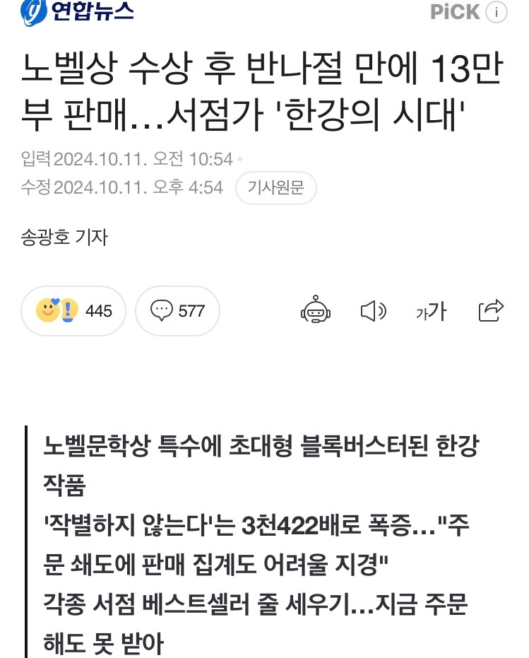 한강작가님 수상에 이어 한강책만 찾아 읽어보려는 현상에 대하여.
