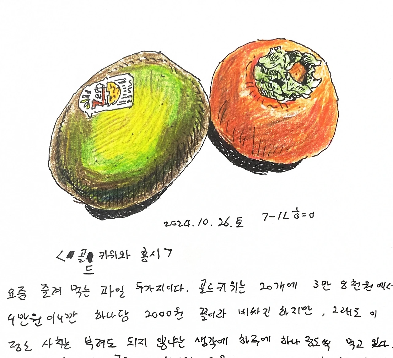 요즘 즐겨 먹는 과일 두가지이다. 골드키위는 20개에 3만 8천원에서 4만원이니깐 하나당 2000원 꼴이라 비싸긴 하지만, 그래도 이정도 사치는 부려도 되지 않냐는 생각에 하루에 하나정도씩 먹고 있다. 아침에 일어나면 골드키위 하나랑 우유에 시리얼 말아 간단히 먹고 출근한다. 홍시는 50개에 만 오천원 하는걸 사다가 숙성을 시켜서 먹었다. 사이즈가 작긴 한데, 홍시 많이 먹으면 변비 생긴다는 말만 아니면 더 많이 먹었을 만큼 한번 먹으면 두개에서 많으면 다섯개까지 먹곤 했다. 씨없는 감을 홍시로 만든건데 씨자리가 물컹하니 톡톡 씹히는 그 식감이 참 좋다. 그 식감없이 물렁하니 달기만 하면 그것은 별 매력 없을거 같다. 홍시는 짝지랑 나랑 순식간에 먹어 치워서 다시 주문한 거 같긴한데, 빨리 와서 또 먹고 싶다.