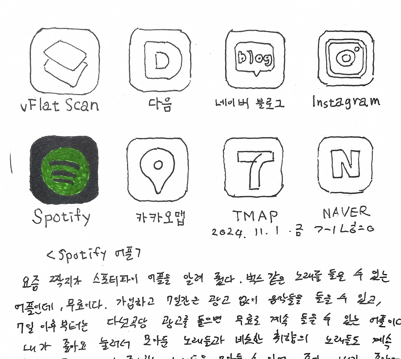 요즘 짝지가 스포티파이 어플을 알려줬다. 벅스같은 노래를 들을수 있는 어플인데, 무료이다. 가입하고 7일간은 광고 없이 음악들을 들을 수 있고, 7일이후부터는 다섯곡당 광고를 들으면 무료로 계속 들을 수 있는 어플이다. 내가 좋아요 눌러서 모아둔 노래들과 비슷한 취향의 노래들도 계속 추천해 주고, 내가 좋아하는 노래들을 모아둘 수 있어 좋다. 내가 좋았던 곡들을 검색해서 5초만 들어보면 내가 좋아하는 류의 음악인지 파악이 되고 5초를 넘어가면 패스한다. 그렇게 해서 몇일만에 350곡을 내 리스트에 모아두었다. 힙합, 조용한 노래, 클래식, 첼로, 피아노, 바이올린, 애니, 영화음악, 일본음악, 릴스 음악, 국악, 옛날 노래등등 장르를 불문하고 다양하게 모아두었다. 운전하며 늘 라디오 어플로 음악을 들었는데, 지금은 스포티파이에 내가 모아둔 음악을 그때그때의 내 상태에 따라 찾아 들으니 너무 좋다. 스포티파이 어플 강추!! 요즘 반복해서 자주 들은 노래는 정상수의 명사수와 부산을 대표해, 정미조의 개여울 이다.