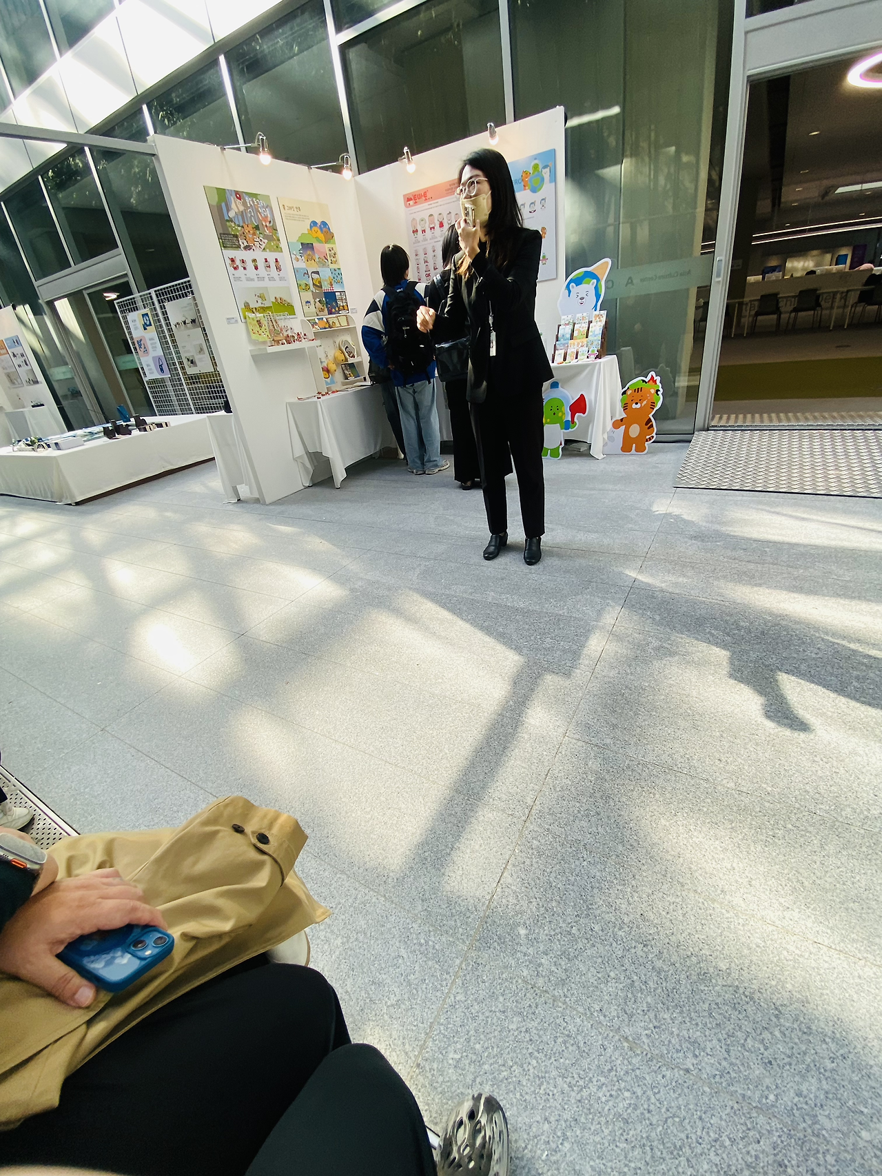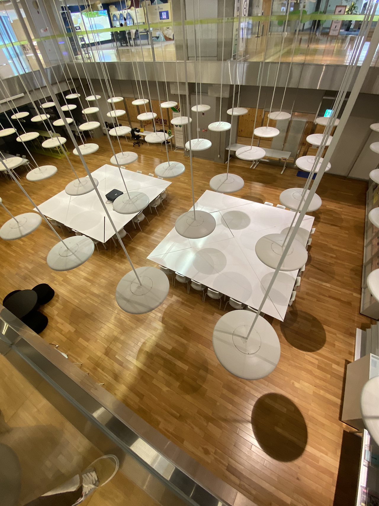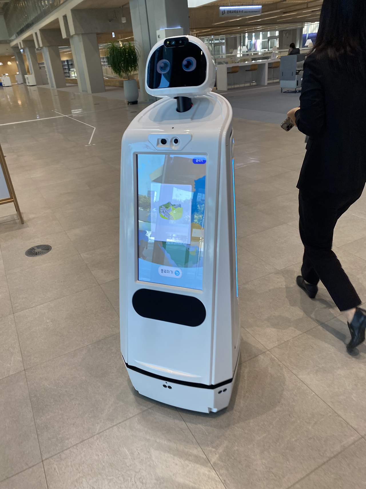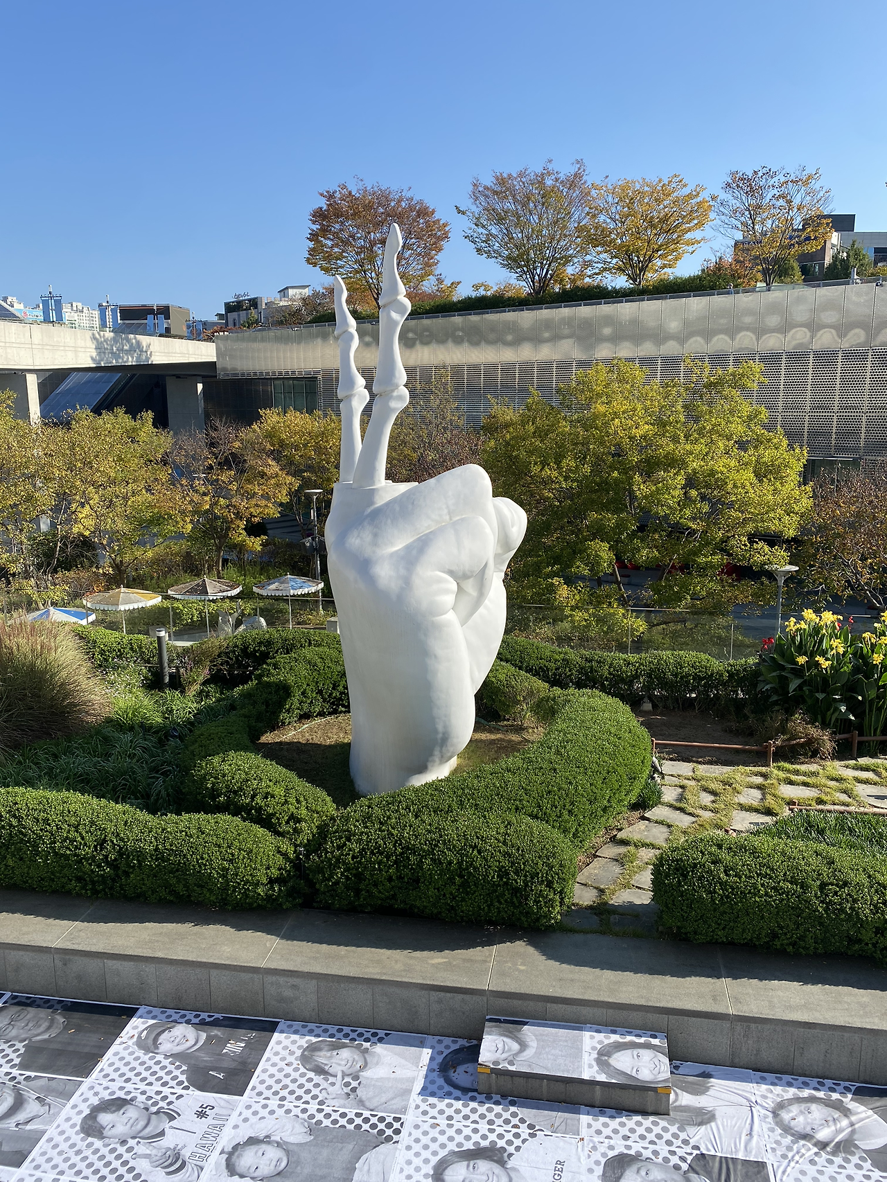 10시 30분에 맞춰 임희영 해설사 선생님의 도슨트 설명이 시작되었다. 우리 말고 단체 일행이 8명 정도 더 함께 했다. 어제 우리가 2시간 30분에 걸쳐 천천히 관람했던 것들을 자세히 설명해 주셨는데, 어제 우리가 전체적으로 다 잘 둘러봤구나 생각되었다. 건물 공간에 위에서 부터 뻥뚤린 사각 공간이 곳곳에 있다. 해설사 선생님이 목운동을 한번 하시죠 하며 하늘을 올려다보게 했는데, 1층 지면에서 뚤린 공간으로 햇빛이 들어왔다. 건물 외벽은 유리 패널로 되어있고 그 바깥으로 또 펀칭메탈 패널이 감싸고 있어서 자연채광이 그대로 전달되지 않고 간접적으로 받게 설계되어 있다. 가운데 광장은 기울어지게 설게되었는데, 각 건물마다 지하2층, 지하3층, 지하4층 깊이로 구성되어 있었다. 큰 건물이지만, 자연이 느껴지게 연결되어 있는 건물이었다. 건물 실내를 통과하면 긴 뒷공간이 있는데, 그곳벽에는 대나무가 우뚝 쏟아 있었다. 우리가 갔을때는 디자인과 대학생들의 전시회가 열리고 있었다. 광장을 걷는데, 새소리가 들리는 것이 마치 도시 숲속을 걷는 느낌이 들어 무척 신기하기도 했다. 건물 중간중간 큰 나무들이 많다보니 새들이 많이 날아와 살고 있었다.