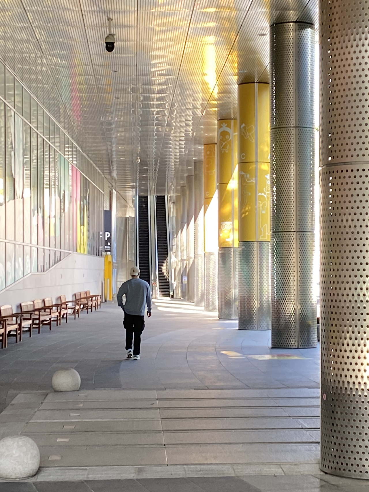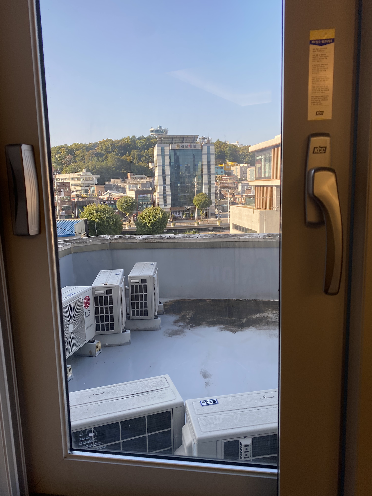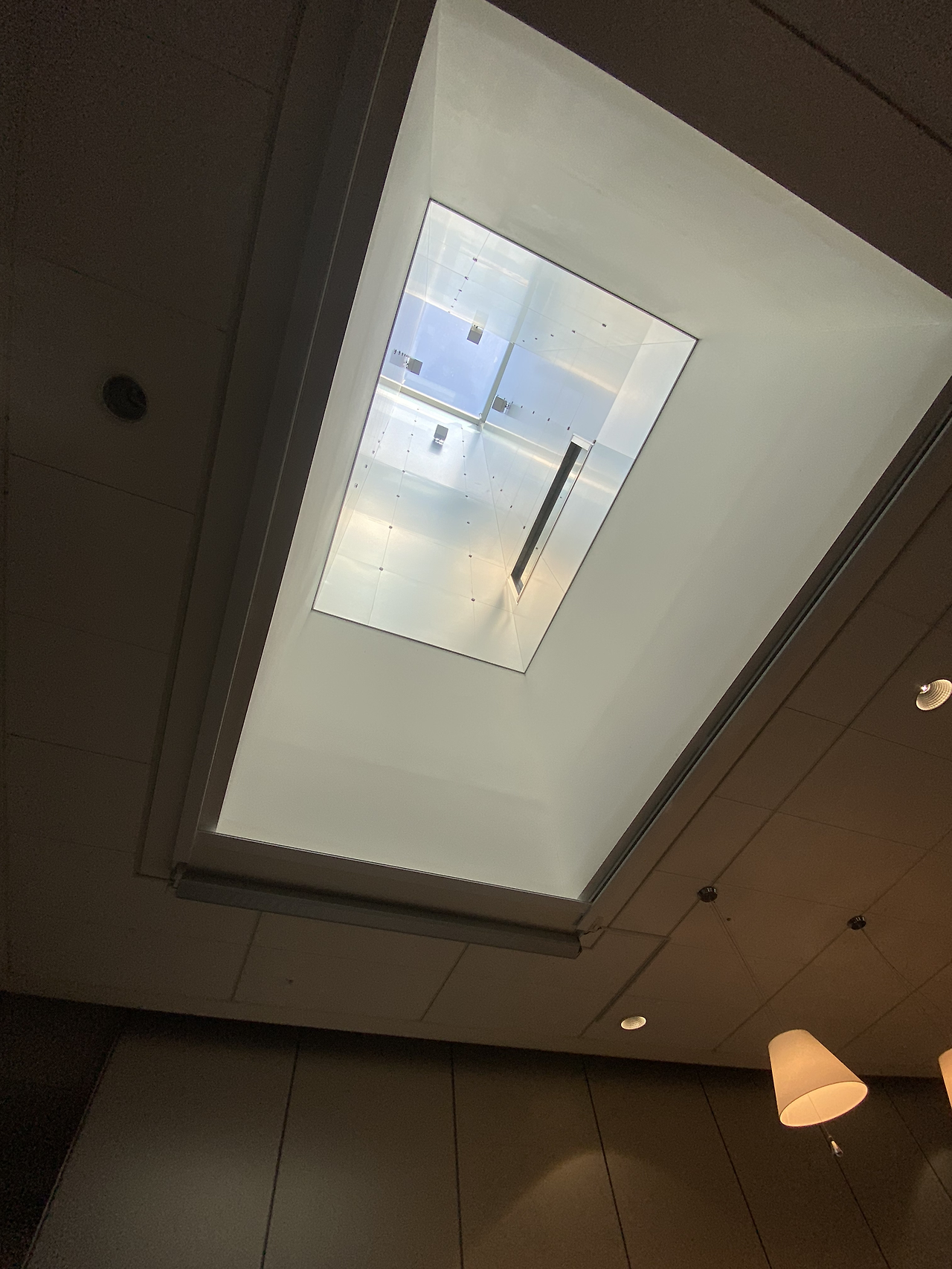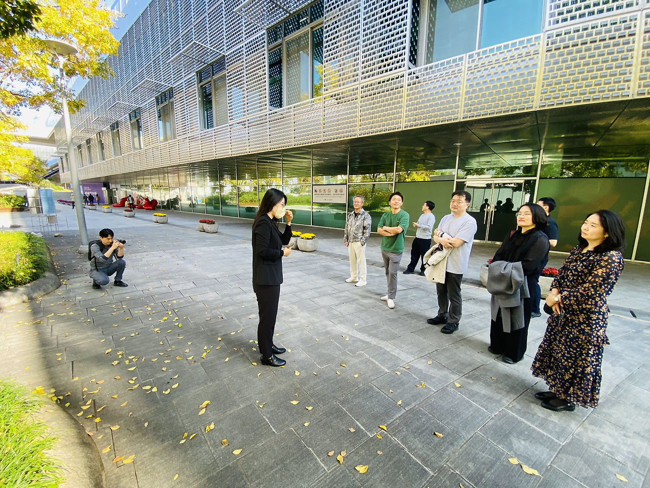 10시 30분에 맞춰 임희영 해설사 선생님의 도슨트 설명이 시작되었다. 우리 말고 단체 일행이 8명 정도 더 함께 했다. 어제 우리가 2시간 30분에 걸쳐 천천히 관람했던 것들을 자세히 설명해 주셨는데, 어제 우리가 전체적으로 다 잘 둘러봤구나 생각되었다. 건물 공간에 위에서 부터 뻥뚤린 사각 공간이 곳곳에 있다. 해설사 선생님이 목운동을 한번 하시죠 하며 하늘을 올려다보게 했는데, 1층 지면에서 뚤린 공간으로 햇빛이 들어왔다. 건물 외벽은 유리 패널로 되어있고 그 바깥으로 또 펀칭메탈 패널이 감싸고 있어서 자연채광이 그대로 전달되지 않고 간접적으로 받게 설계되어 있다. 가운데 광장은 기울어지게 설게되었는데, 각 건물마다 지하2층, 지하3층, 지하4층 깊이로 구성되어 있었다. 큰 건물이지만, 자연이 느껴지게 연결되어 있는 건물이었다. 건물 실내를 통과하면 긴 뒷공간이 있는데, 그곳벽에는 대나무가 우뚝 쏟아 있었다. 우리가 갔을때는 디자인과 대학생들의 전시회가 열리고 있었다. 광장을 걷는데, 새소리가 들리는 것이 마치 도시 숲속을 걷는 느낌이 들어 무척 신기하기도 했다. 건물 중간중간 큰 나무들이 많다보니 새들이 많이 날아와 살고 있었다.