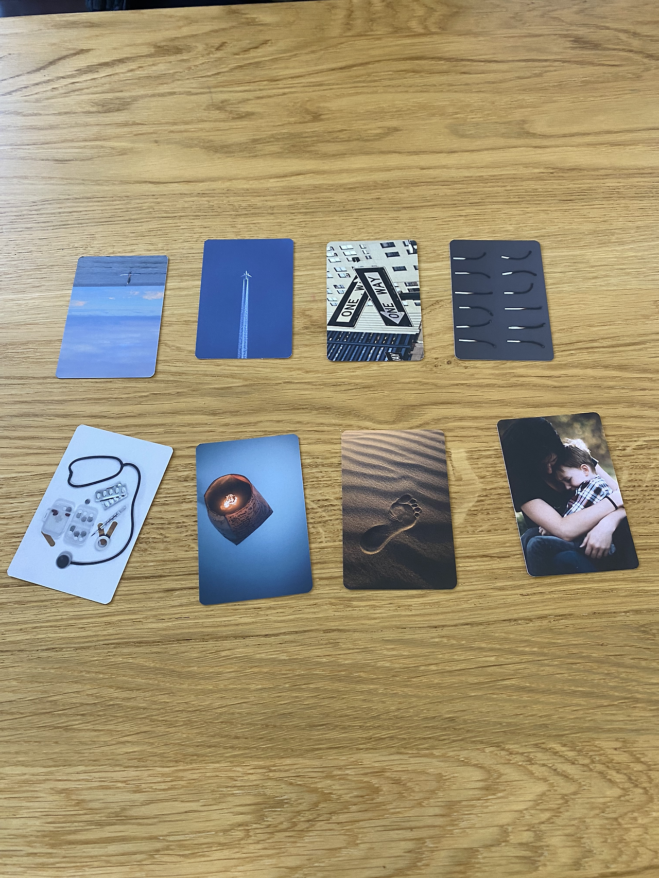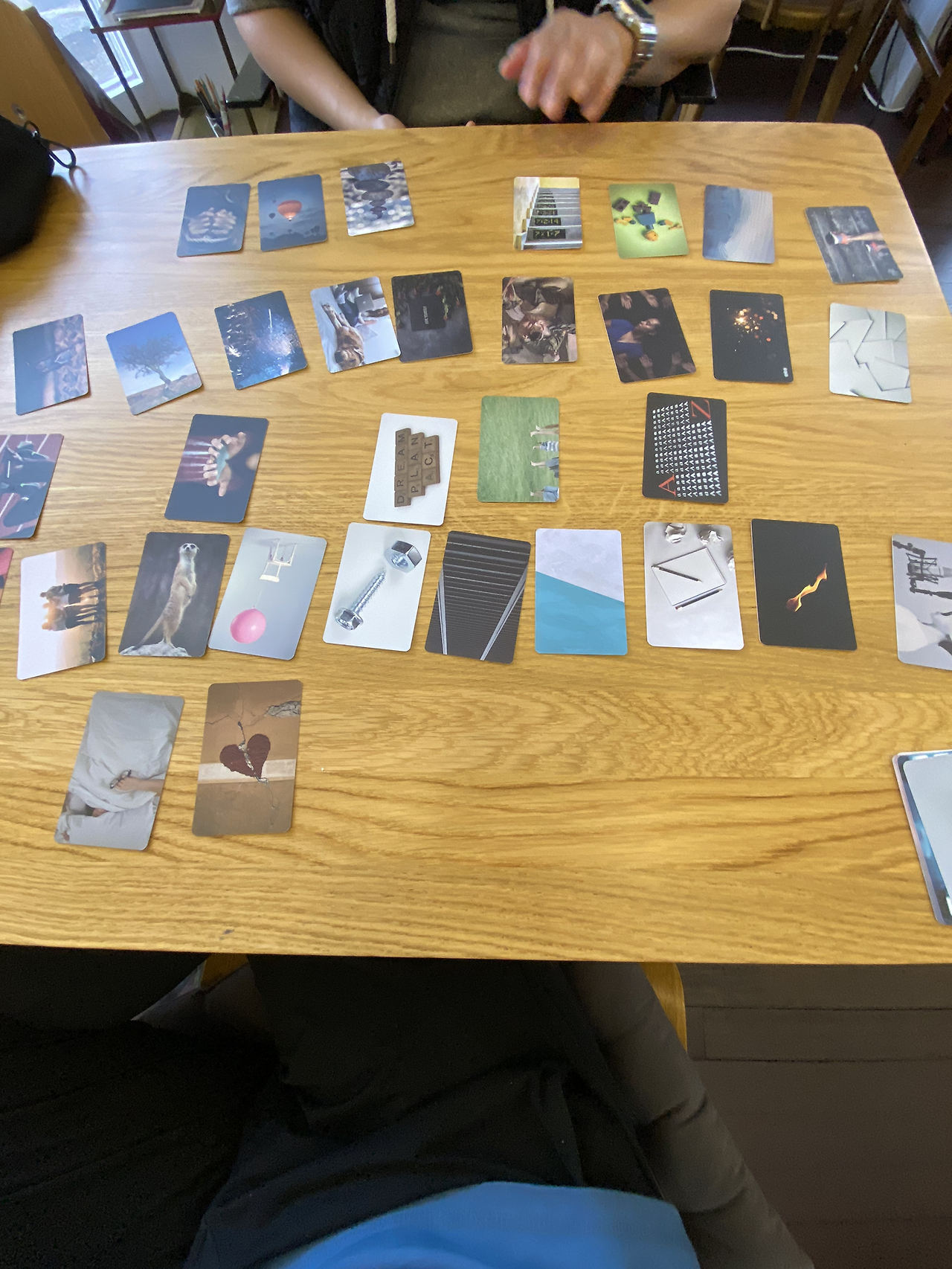 보통은 ‘똑똑 대화카드’로 워밍업만 하는데, 이번 자조모임에서는 총 아홉장(처음에 네장, 뒤에 다섯장)을 뽑아 1시간 30분 넘게 길게 이야기 나누었습니다. 워밍업에 그치지 않고 그 카드의 질문과 연결해 길게 말을 이어가는 것도 좋구나 알게된 시간이었습니다. ‘똑똑 대화카드’는 총 40장의 사진이 있는 카드입니다. 즉흥적으로 마음에 드는 카드를 고르고 그 사진을 왜 선택했는지 설명합니다. 그리고 그 카드 뒤에는 질문이 있어서 질문을 읽고 대답을 합니다. 물론 질문이 어렵거나 이야기 하고 싶지 않은 경우는 패스해도 됩니다.