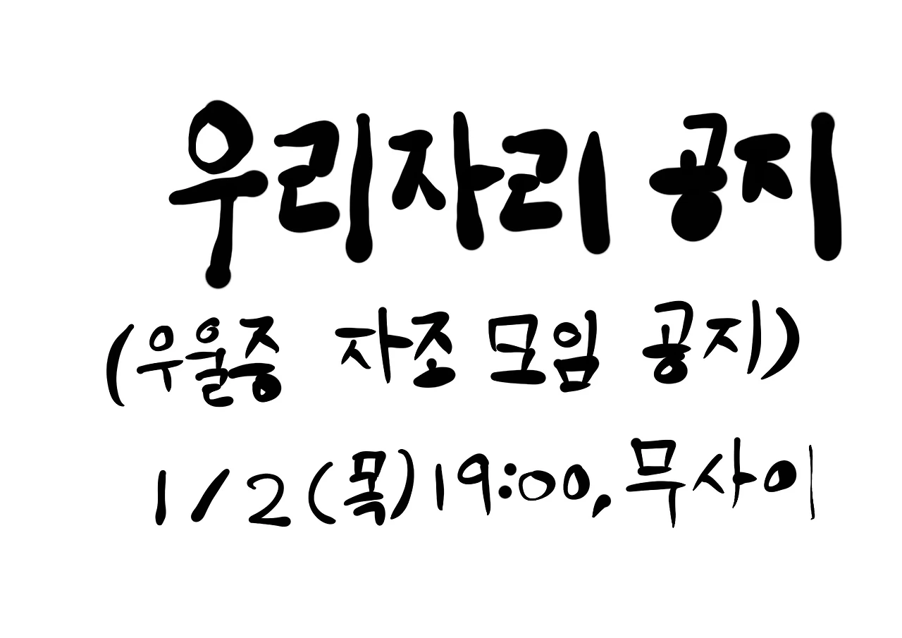 우리자리 공지(우울증 자조모임 공지) 1/2(목)/19시, 부산 무사이