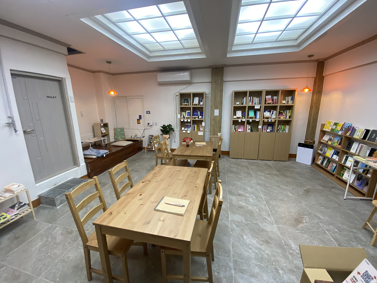 여러 모임을 기획하시는 사장님의 철학에 관심이 많아 인스타로 팔로우해서 늘 눈팅만하다가 드뎌 내가 참여할수 있는 모임을 발견해 나비처럼 날아서 벌처럼 쏘아 신청을 했다. 일요일 점심즈음이라 차가 밀리지 않아 반송시장까지 35분만에 도착했다. 시장앞에 있는 공영주차장에 주차를 하고 조금 내려가니깐 시장 중간에 눈에 띄는 책방이 보였다. 공간도 넓고, 넓은 탁자와 의자가 마음에 들었다. 음료주문이 가능한 점도 좋았다. 일단 가방을 의자에 두고 큐레이션을 둘러보았다. 내가 관심있는 주제의 책이 많아 세권이나 책을 구매했다. 최근에 북구 화명동에 있는 복합문화공간 무사이에서 로컬을 주제로 지역에 사는 기획자, 예술가, 작가, 사장님이 모였는데 그 주제와 관련된 책을 두권 사고, 한권은 내밀함에 대한 이야기라 구입을 했다.