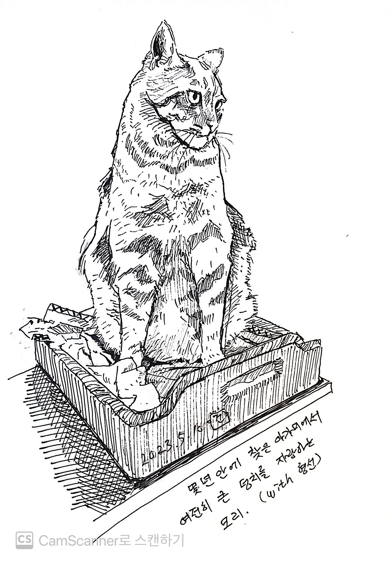 형선씨가 문화기획자이다 보니 차를 타고 오면서 여러가지 아이디어와 기획들을 나누었다. 아가미에는 네 마리의 고양이가 살고 있는데, 한 마리 빼고 손님 친화적인 고양이들이다. 뚱돼지 모리는 여전히 거대한 체구를 자랑하고 있었고, 기념으로 모리를 그려서 사장님께 선물로 드리고 나왔다. 원래는 형선씨 아내분과 같이 세명이서 같이 식사를 하려 했으나 일정이 생기셔서 형선씨가 가르쳐준 돈가스 맛집에 혼자 가서 맛있게 먹었다. 다음에 짝지랑 같이 가봐야지 생각했다.