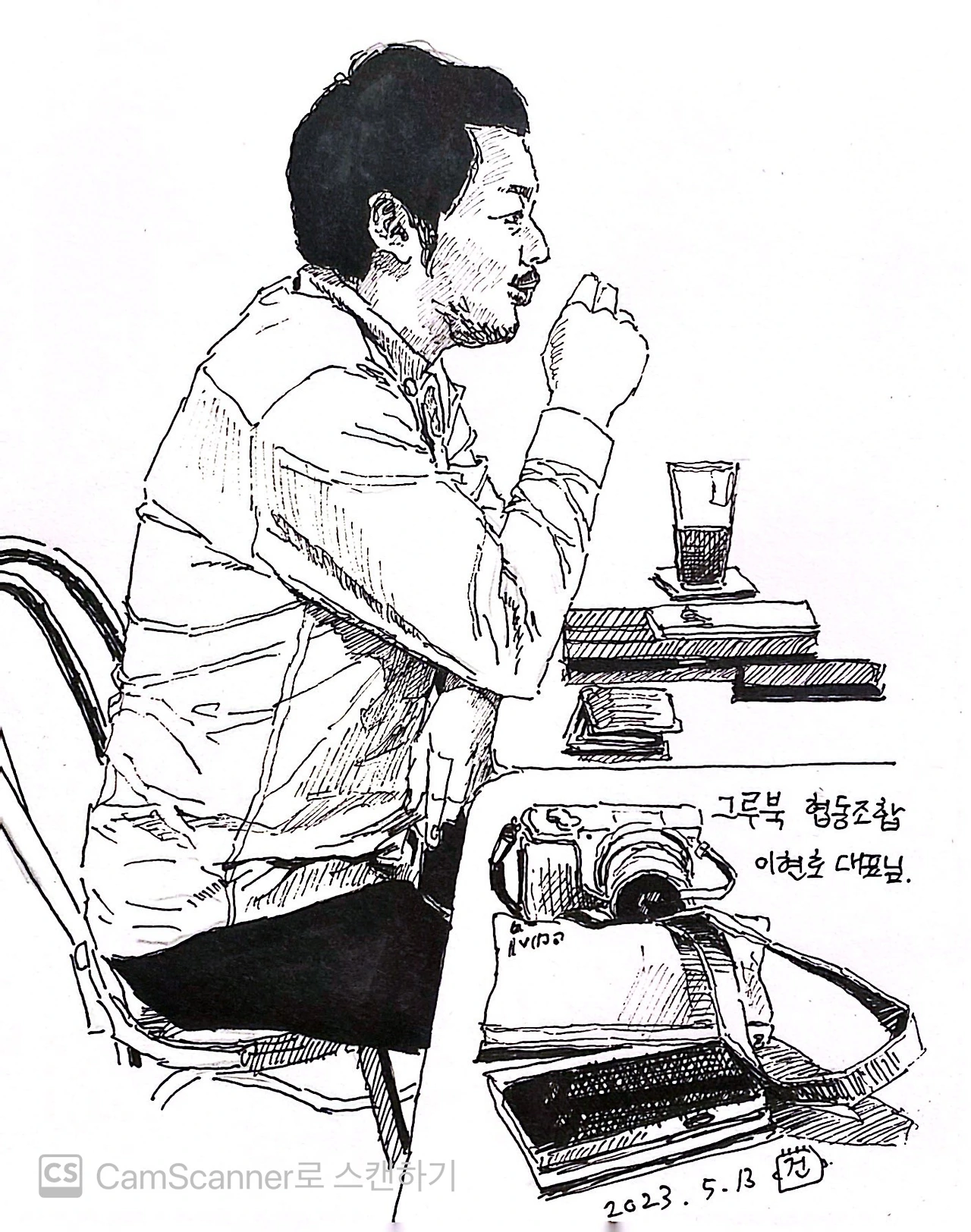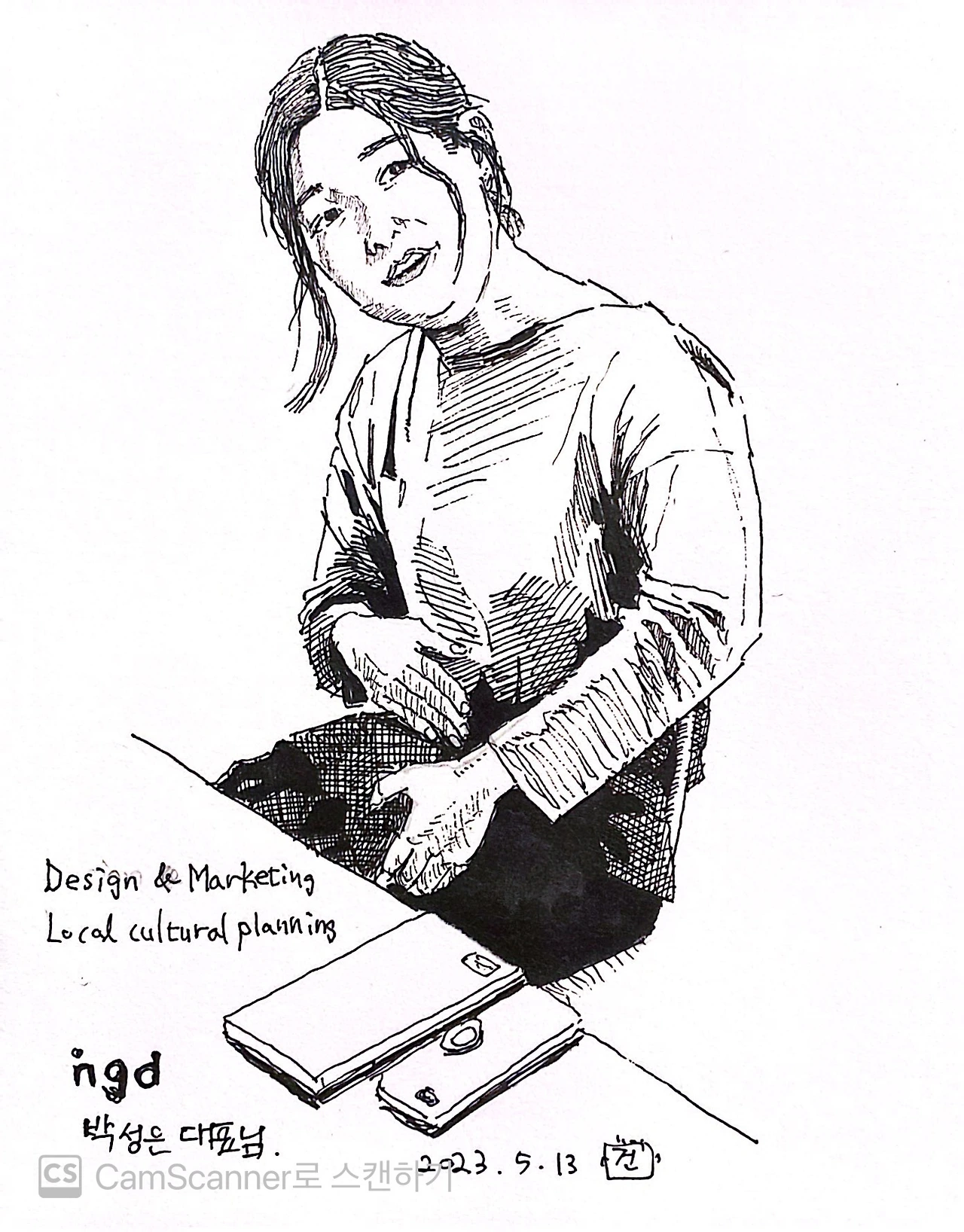 1시간 30분정도 신나게 이야기 나누었다. 더 이야기 나누고 싶은 마음이 가득해서 서로 같이 식사를 할까 했는데, 박성은 대표님의 두돌이 넘은 아기가 열이 많이 나고 아프다고해서 다음번을 기약하기로 하고 일어났다. 엔지디에 놀러가기전에 대표남과 이사님 그림을 미리 그렸는데, 선물을 드렸더니 감사의 마음으로 가게에서 판매하는 물품중에 작은 필통 두개를 챙겨주셨다. 짝지하나 나하나. 원래 드로잉 도구를 넣어다니는 필통이 엄청나게 컸는데, 실제로 쓰는 도구는 몇개 안되었다. 그래서 그 드로잉 도구만 옮겨 담았다. 대표님~ 잘 쓰겠습니다.