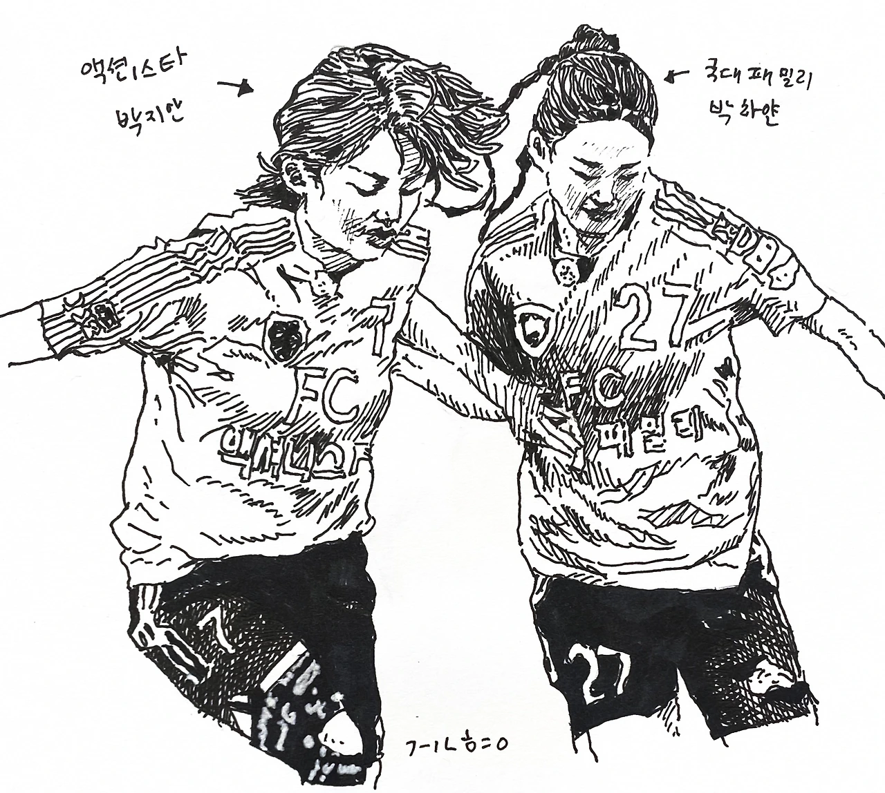 골때녀 G리그, A그룹 마지막 경기. 두 팀 모두 3승이라 1,2위로 다 올라갈 텐데도 결승전처럼 최선을 다하는 모습이 멋졌다. 경기가 끝나고 존경의 마음으로 박수를 쳤다. 액셔니의 박지안과 국대의 박하얀의 루키대결. 누가봐도 다들 박하얀의 손을 들어 줄 것 같다. 둘 다 잘하긴 하지만, 박하얀은 전 핸드볼 선수 출신이라 그런지 운동장 전체를 읽는 눈이 있고 템포 조절을 할 줄 알았고 제일 중요한 체력이 뒷받침 되었다. 운동선수 출신들이 많은 국대가 유리할 수 밖에. 육상 선수 김민지, 전 스케이팅 선수 출신 박승희, 작은 황소 황희정, 모두 멋졌다. 내일은 드디어 한일 2차전. 기대된다.