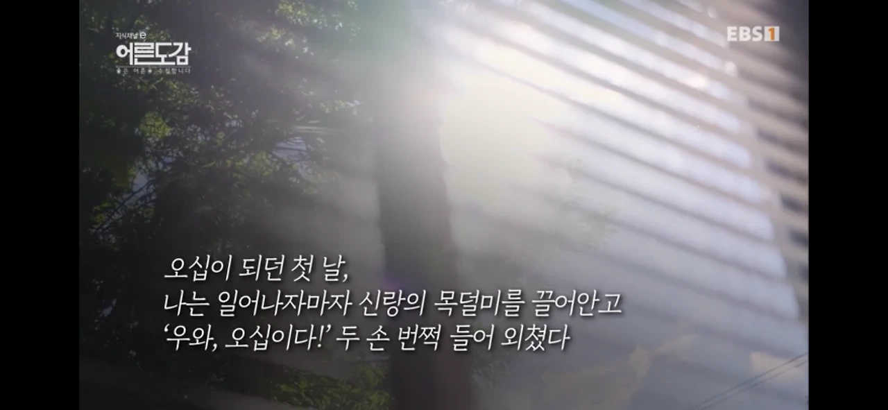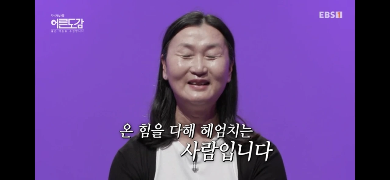 채진영누나가 짝지가 나온 방송을 캡쳐해서 올려줘서 5분 44초 분량의 “지식채널e 어른도감“ 편에 출현한 짝지 방송을 찾아 보았다. EBS에회원가입하고(그래야 방송 전부를 볼수 있습니다.ㅋㅋ) 방송을 보았다. 외계에서 온 어른 이라는 제목을 안고 방송은 시작되었다. 50대 퀴어로써, 지구에 사는 외계인으로써 이야기를 들려주는 짝지가 멋졌다.ㅎㅎ 이 프로그램은 반말로 진행하는 모냥인지, 질문자도 짝지도 반말로 이야기를 나눈다. 짝지와 함께찍은 내 사진도 몇장 지니치더라.