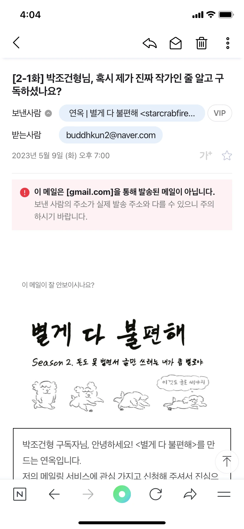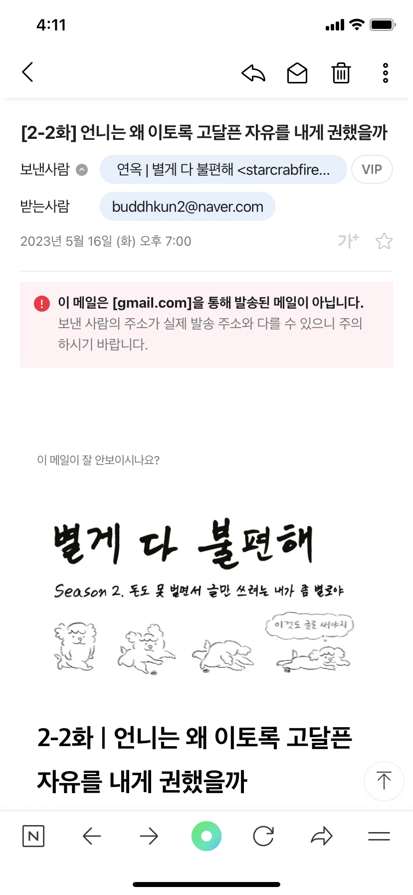 연옥작가님의 “별게 다 불편해 시즌2” 메일링 서비스 편지에 대한 답변의