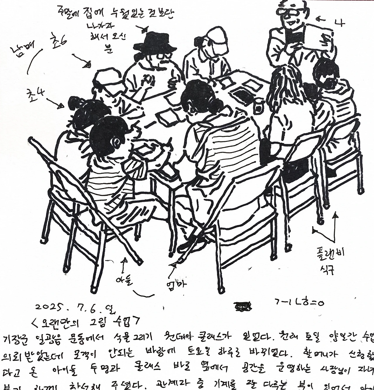 기장군 일광읍 문동에서 식물그리기 원데이 클래스가 있었다. 원래 토일 양일간 수업을 의뢰받았는데 모객이 안되는 바람에 토요일 하루로 바뀌었다. 할머니가 신청했다고 온 아이들 두명과 클래스 바로 옆에서 공간을 운영하는 사장님이 자녀분과 함께 참석해 주셨다. 관계자 중 기계를 잘 다루는 분이 있어서 아이패드와 모니터를 연결해 주셔서 큰 화면에 띄워 설명할 수 있어 편했다. 오랜만에 수업을 하니 수입이 생겨 좋았고, 가르치는 일도 재미있었다. 남매 둘은 둘다 수줍음이 많고 조용했는데, 오빠가 “선생님이 상세하게 설명을 해주셔서 좋았다”고 소감을 발표해 주었다. 동생과 오빠는 미술학원을 같이 다녔는데 오빠는 다른 학원을 많이 다니다보니 지금은 미술학원에 다니지 못하고 있다 했다. 클래스 참여자들의 그림들이 다들 수준급이라며 사무국장님이 칭찬해 주셨다. 또 다른 그림수업이나 그림일기 수업들이 종종 의뢰가 들어오면 좋겠다.