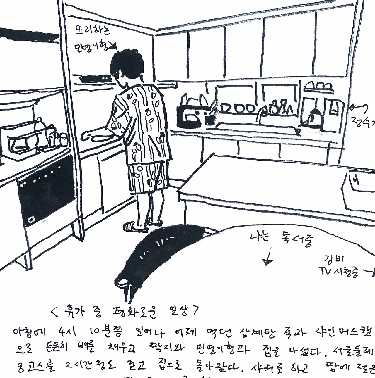 아침에 4시 10분쯤 일어나 어제 먹던 삼계탕 죽과 샤인머스캣으로 든든히 배를 채우고 짝지와 민영이형과 집을 나섰다. 서울둘레길 8코스를 2시간정도 걷고 집으로 돌아왔다. 샤워를 하고 땀에 절은 옷들을 빨래 돌리고 짝지를 빼곤 형과 나는 잠시 낮잠을 잤다. 점심때가 되어 형은 양파와 피망을 썰고 제육과 함께 볶는다. 짝지는 내 독서에 방해되지 않게 이어폰을 끼고 거실에서 티비를 본다. 바깥은 무척 덥지만, 휴가에 이렇게 쉬는게 진정 휴가이지 않을까. 집에서 갖고 왔던 책들은 다 읽어가서 이북으로 읽던 책들을 아이패드에 띄워 읽는다. 밤낮이 바뀐 경래형이 일어나면 오후에는 형이 가는 헬스장에서 같이 운동을 하려고 한다.(월요일은 아파트 헬스장이 쉬는 날이다) 저녁은 짝지가 산다고 하는데 외식이다. 내일아침도 4시즈음 일어나야겠다. 내일은 서울둘레길 9코스를 걷는다.