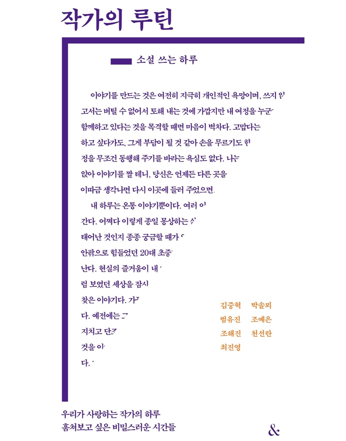 작가의 루틴: 소설 쓰는 하루(김중혁, 박솔뫼, 범유진, 조예은, 조해진, 천선란, 최진영)
