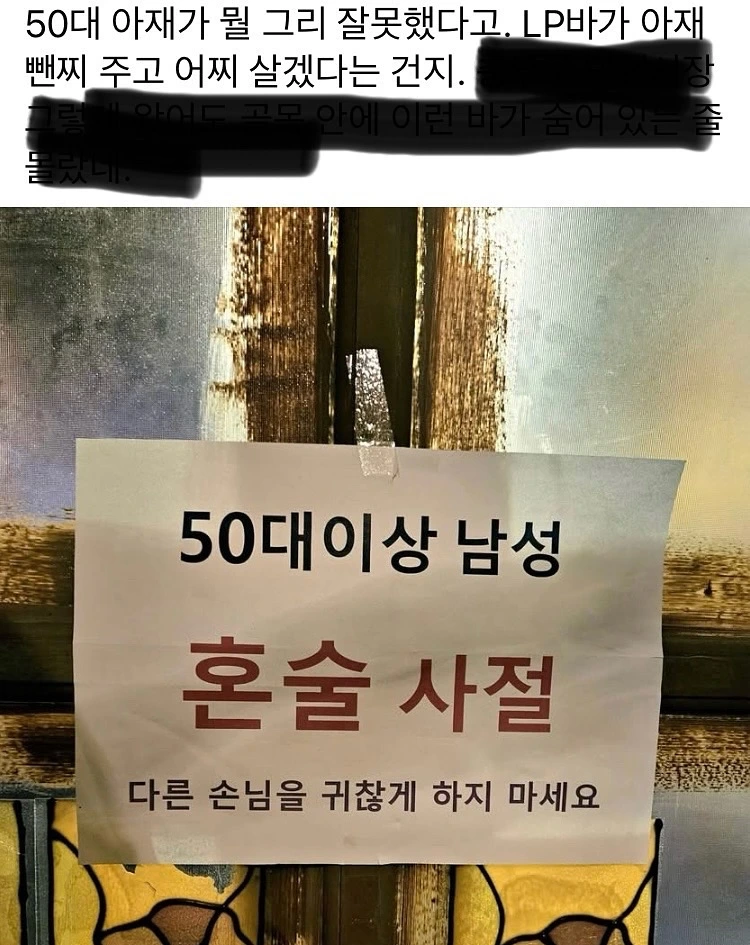 “50대 이상 남성 혼술 사절” 문구에 대한 생각