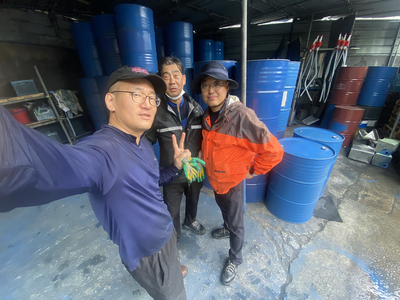 일단 사진부터 보자. 왼쪽이 나이고, 중간이 나보다 2주 먼저 들어온 25년 화물차 경력의 전주임 형님, 그리고 제일 오른쪽이 최근에 이분을 주인공으로 해서 여러편의 글을 적었던 그 글의 주인공 권주임 형님. 일단 문제가 해결된거 같아 형님들에게 사진 한장 찍자고 해서 찰칵 찍었다.