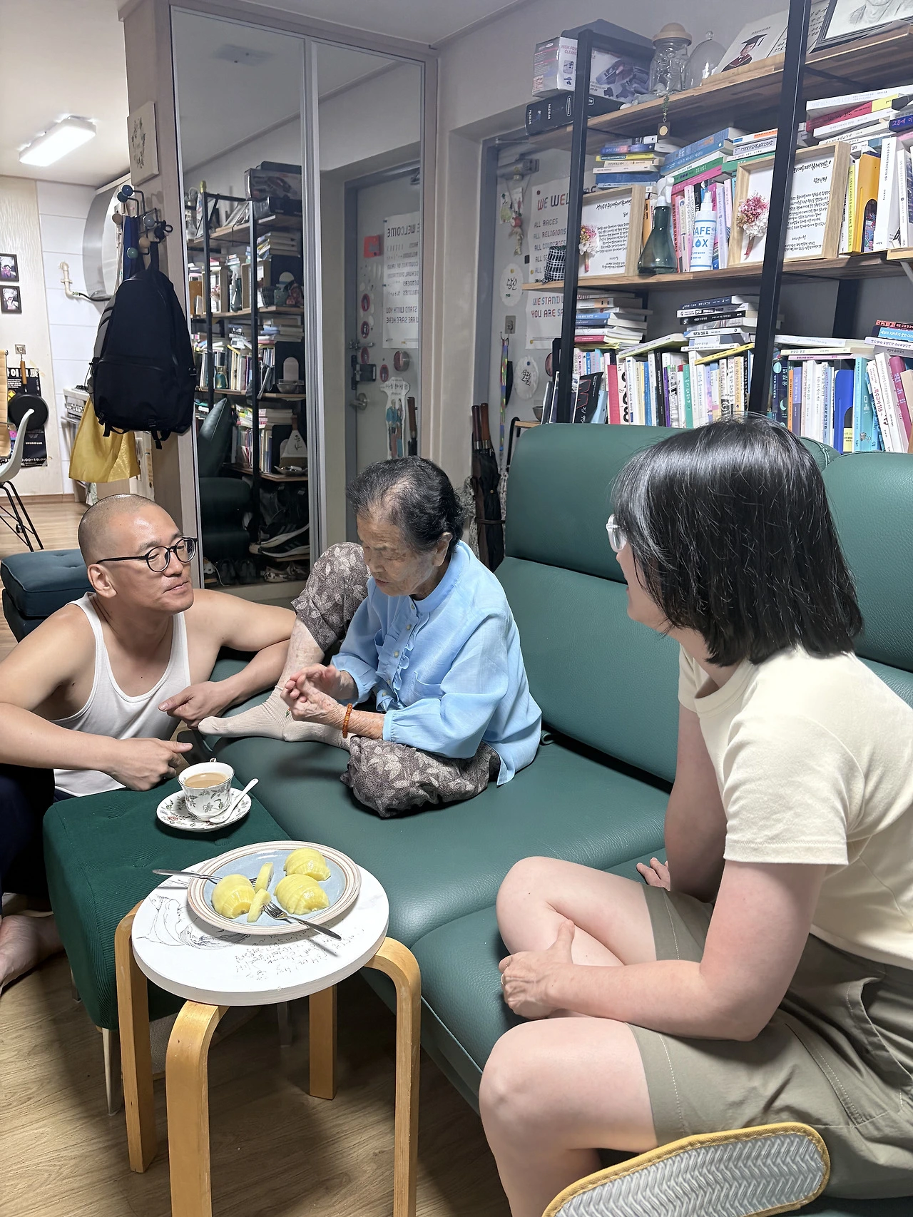 식당을 가도 할머니 입에 맛는 가게를 찾기가 어렵다. 그나마 전에 간 보리밥 집이 먹을만하셨다고 그리고 갔다. 동생차에 할머니랑 뒤에 타고 가는데, 할머니가 혼잣말을 하시는 걸 처음 봤다. 식당에서는 다행히 식사를 잘 했고, 또 집에 들어가면 할머니가 답답해 하셔서 황산공원에 들러 보기로 했는데 조명이 너무 어두워 걷기가 그랬다. 카페를 가도 할머니가 드실게 없으니 어디가지 고민하다가 동생이 우리집에 잠시 들리면 안되냐고 해서 일단 짝지에게 전화해서 허락을 구했다. 동생도 우리집은 처음. 할머니는 3년전에 사직동에서 짝지를 만난 적이 있지만 우리집은 처음이시다.