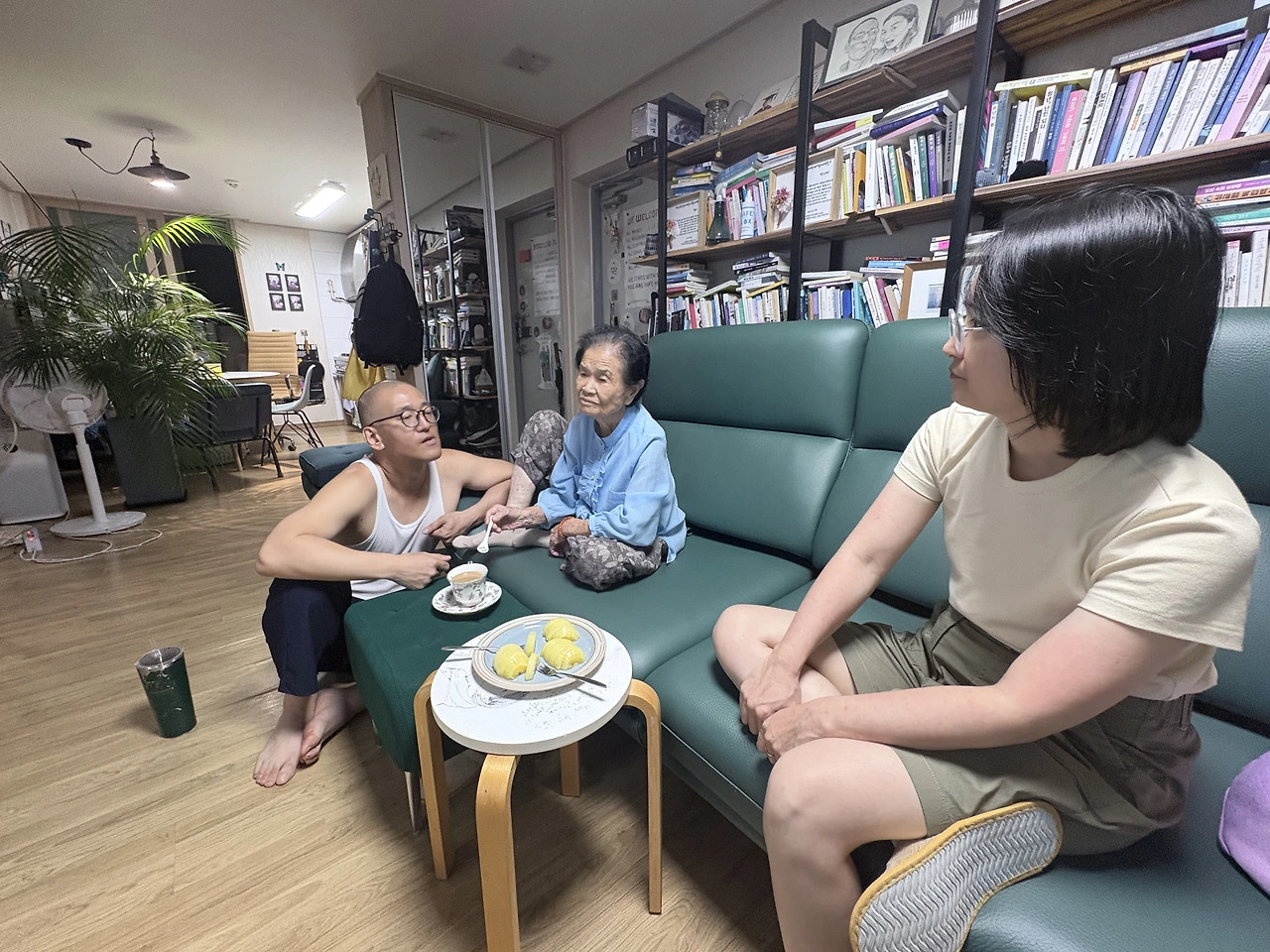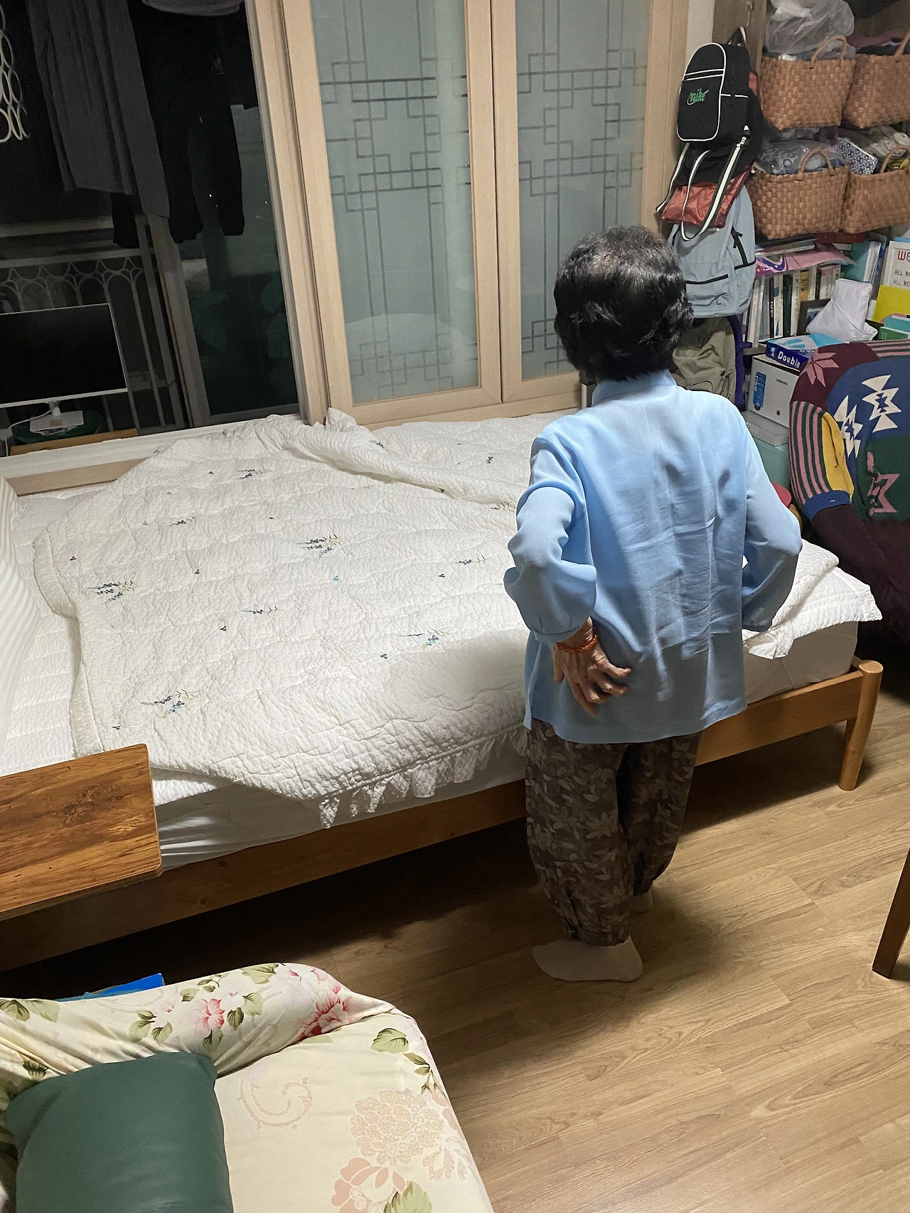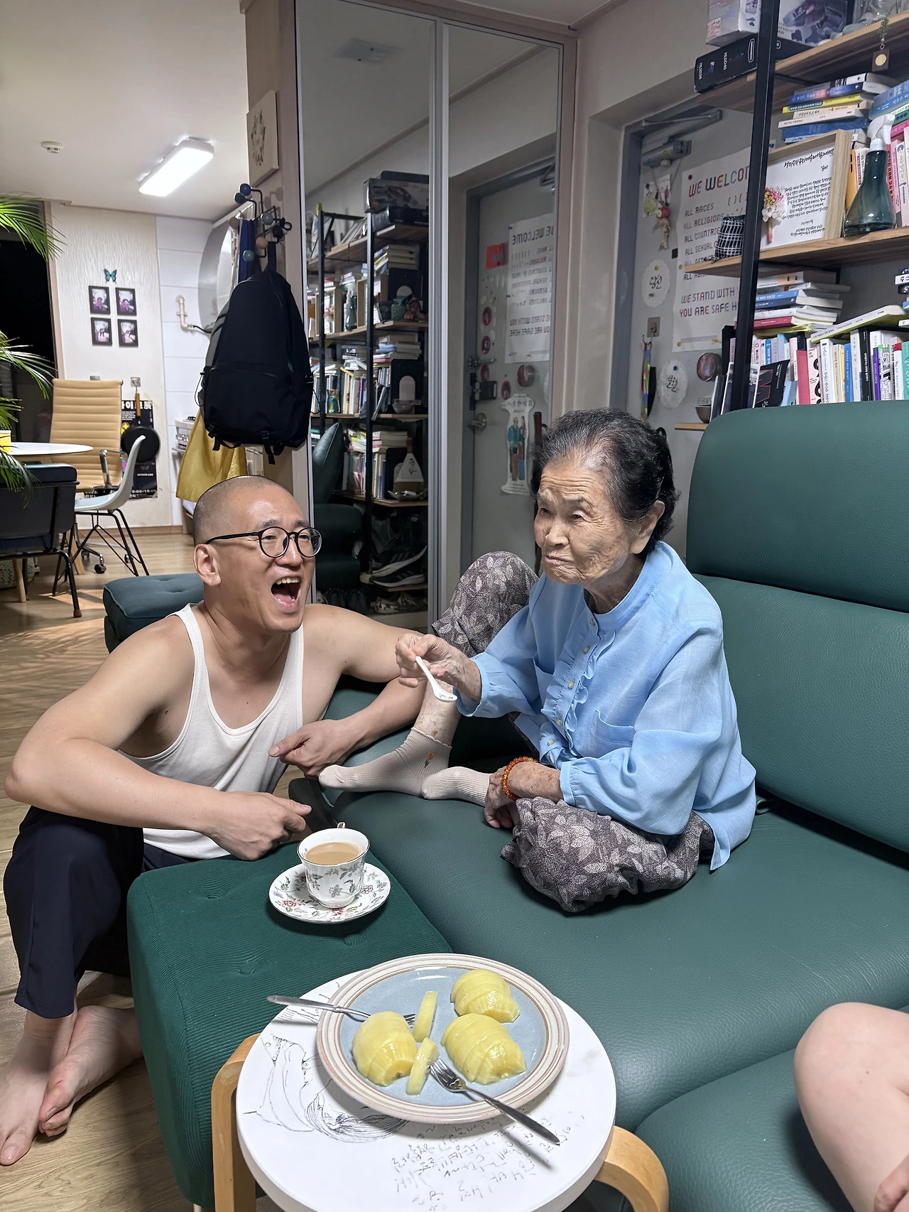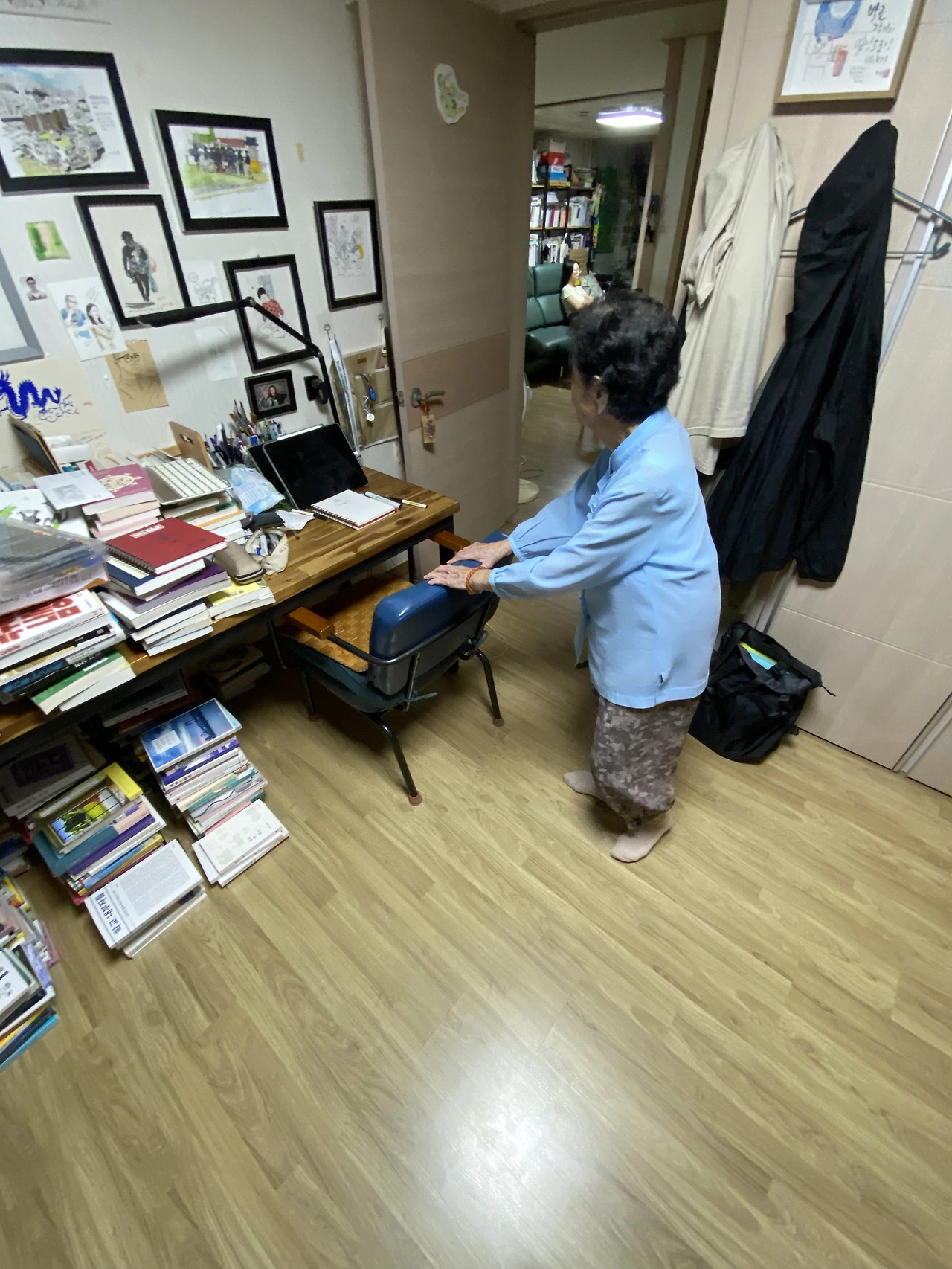 짝지는 동생과 할머니를 허리를 반으로 접어 자세를 낮춰 반겨 맞아 주었고, 동생도 갑자기 오게 되서 미안하다고 말해 주어 두 사람에게 고마웠다. 할머니는 믹스 커피를 타서 반만 마셨다. 할머니와는 소리가 잘 안들리시니 대화가 잘 안된다. 간단한 단어나 의사 표시 정도만 알아 들으시고 나머지는 외국어 들리는 듯 한 모양이다. 짝지랑 동생이랑 대화하고 나는 옆에 앉아 있었는데 할머니가 머리를 돌려 유령에게 이런저런 욕을 쏟아내셨다. 이번에 처음 봤다. 우리는 또 우리끼리 대화하고, 어쩔땐 나도 할머니 따라 그 유령에게 같이 욕을 하기도 했다. 그러다가 할머니 손을 잡고 짝지방도 구경시켜드리고, 내방도 구경시켜드렸다.