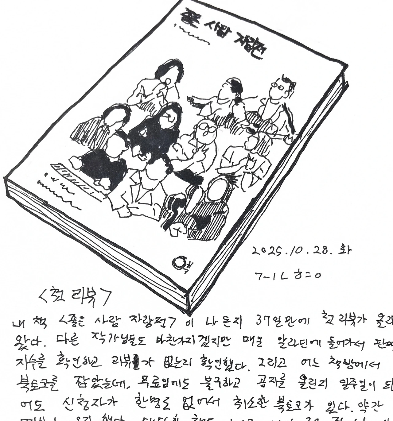 내 책 <좋은 사람 자랑전>이 나온지 37일만에 첫리뷰가 올라왔다. 다른 작가님들도 마찬가지겠지만 매일 알라딘에 들어가서 판매지수를 확인하고 리뷰가 없는지 확인했다. 그리고 어는 책방에서 북토크를 잡았는데, 무료임에도 불구하고 공지를 올린지 일주일이 되어도 신청자가 한명도 없어서 취소한 북토크가 있다. 약간 멘붕이 오긴 했다. 대단한 책도 아니고 내가 글을 잘 쓰는 사람은 아니지만, 그래도 내가 사람들에게 전하고자 하는 메세지는 분명하고 의미있다는 믿음이 있는데, 너무 반응이 없어서 기운이 빠진 건 있다. 내가 인지도가 있는 작가도 아니고 단독 책작업은 처음이니 당연히 그럴수도 있지. 일단 열심히 작업한 책은 나왔으니 남은 북토크만 즐겁게 하고 나는 다시 나의 일상으로 돌아가면 된다. 운이 좋으면 두번째 책 작업도 이어질수 있고. 그러면 된다. 그러니 책도 많이 사주시고, 책리뷰도 많이 올려주세요 ㅠㅠ ㅎㅎ 불쌍한 모드 ㅠㅠ