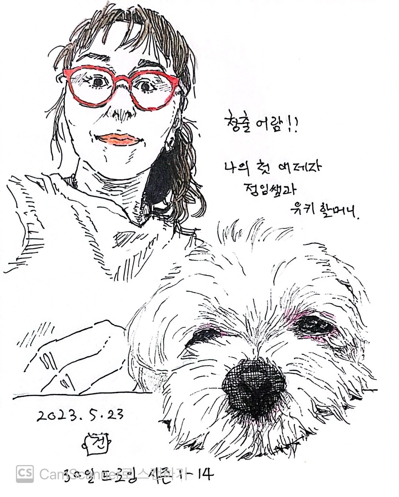 김정임 선생님과 알게 된 것은 5년전으로 거슬러 올라간다. 그때는 내가 일상드로잉 작가로 살아보기로 4년간 실험해 볼때 였다. (그때는 4년간 실험을 해 보았고, 현재는 그냥 작가로 살고 있다.) 6개월정도 내게 드로잉 수업을 들으셨다. 그 뒤로 나는 내게 우울증도 있었고, 코로나도 있어서 지리멸렬한 시간을 보내고 있었을때, 정임 쌤은 성실히 그림을 매일매일 그리셨다. 그리고 전국적으로 유명한 어반스케치 작가님들의 수업을 온오프라인으로 찾아 들으셨다. 수채화로 유명한 정승빈 선생님의 수업을 온라인으로 지금도 듣고 계시고, 대구에는 오프라인 수업도 찾아 들으셨다.