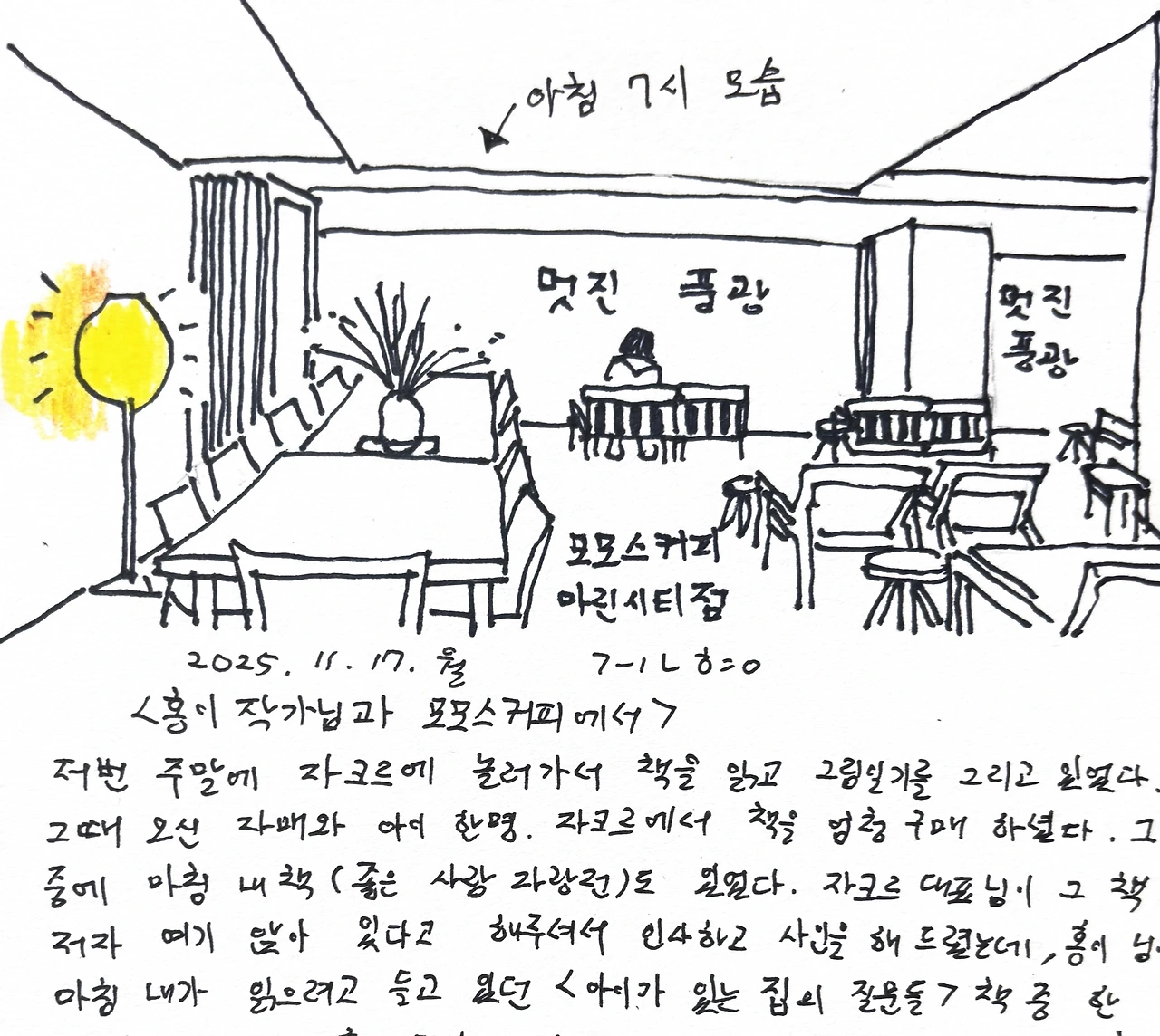 홍이작가님과 모모스커피에서(그림일기)