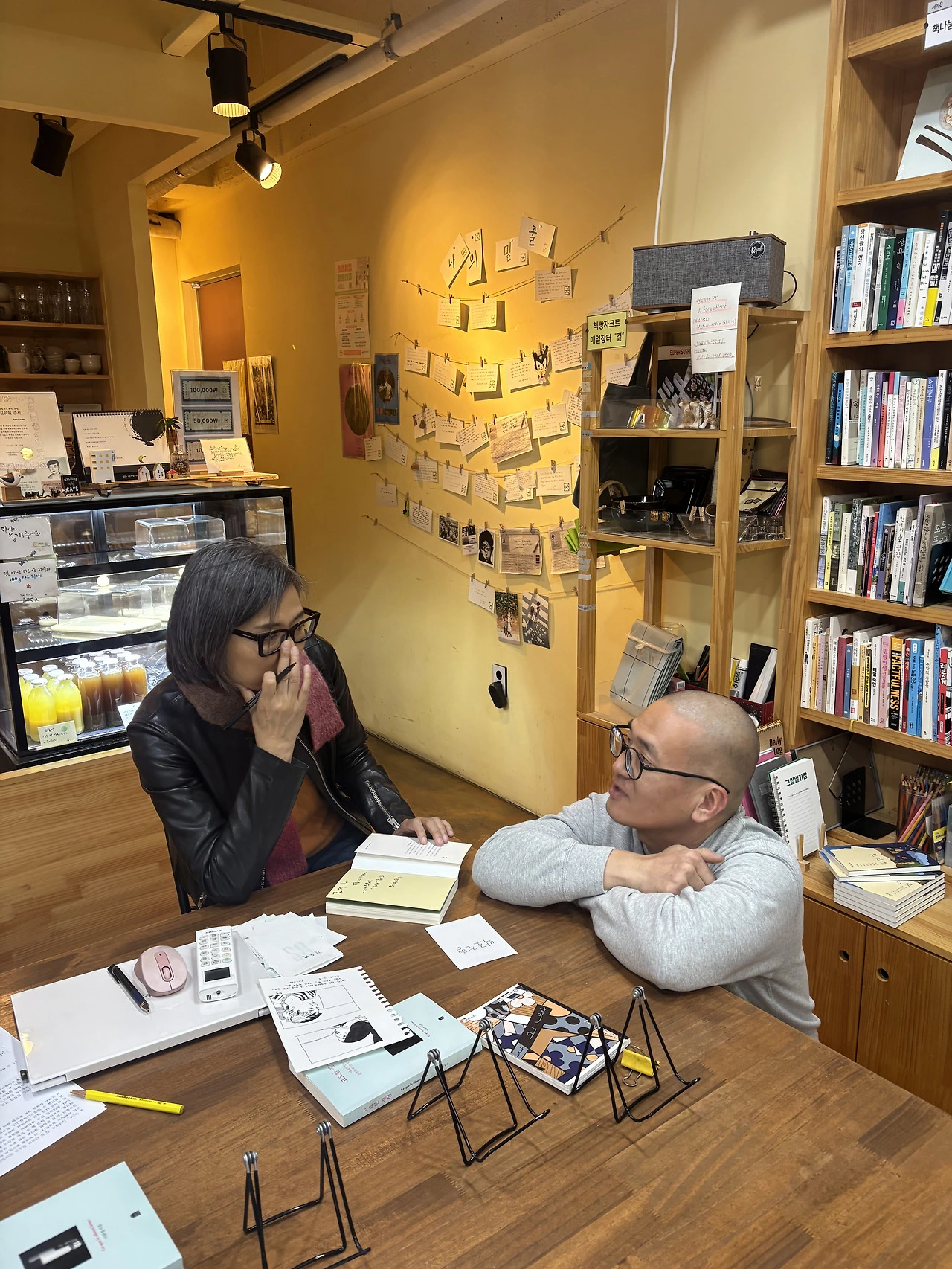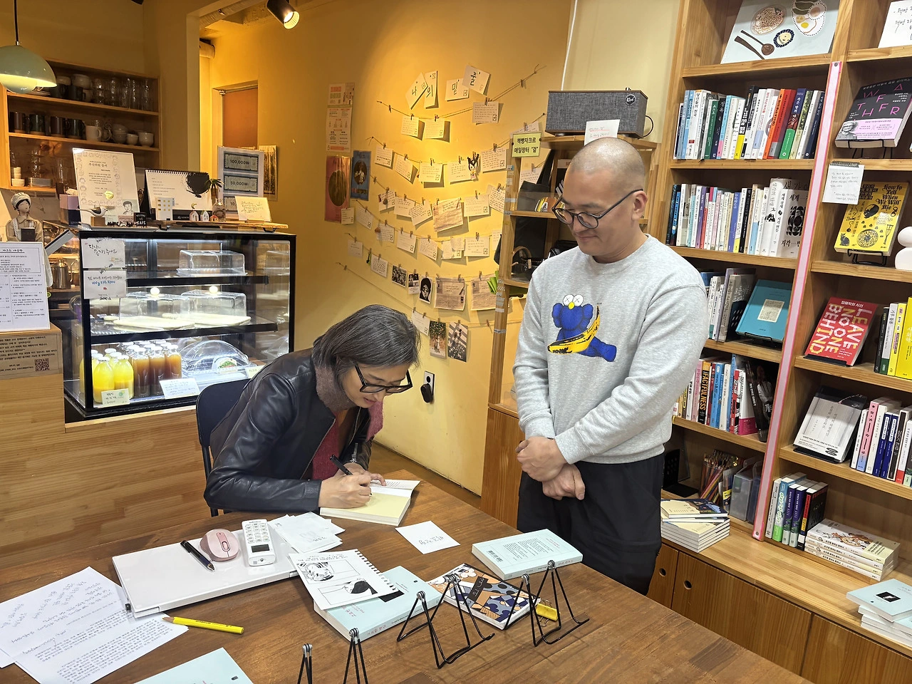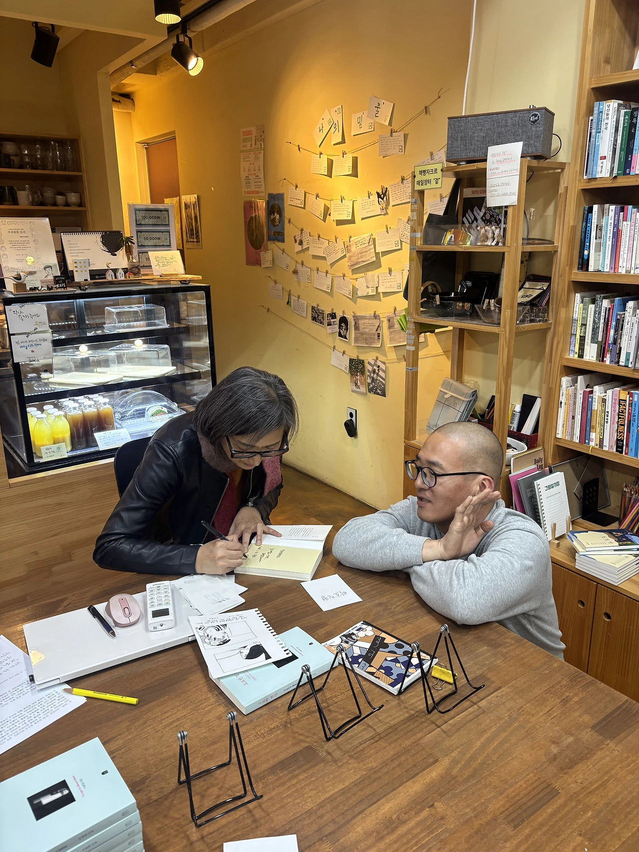작가님은 29살에 우연히 프랑스에 여행을 갔다가 정착을 하셨다고 한다. 프랑스는 길에서도 모르는 사람과 눈을 마주치고 대화를 하려는 자세가 되어 있는 문화의 나라였다. 우리나라에서는 전혀 찾아볼수 없는 모습이다. 10년 랜선친구로 지내던 분을 지난주 주말에 오프라인으로 처음 만났는데, 그분도 한국에서의 여러 어려움때문에 우연히 일본에 갔다가 15년을 쭈욱 살아오셨고, 작년에는 영주권도 얻으셨다고 한다. 그 분에게는 일본이 자신과 잘 맞는 나라였던 셈. 이런 가벼운 질문으로 북토크를 시작하셨다.
