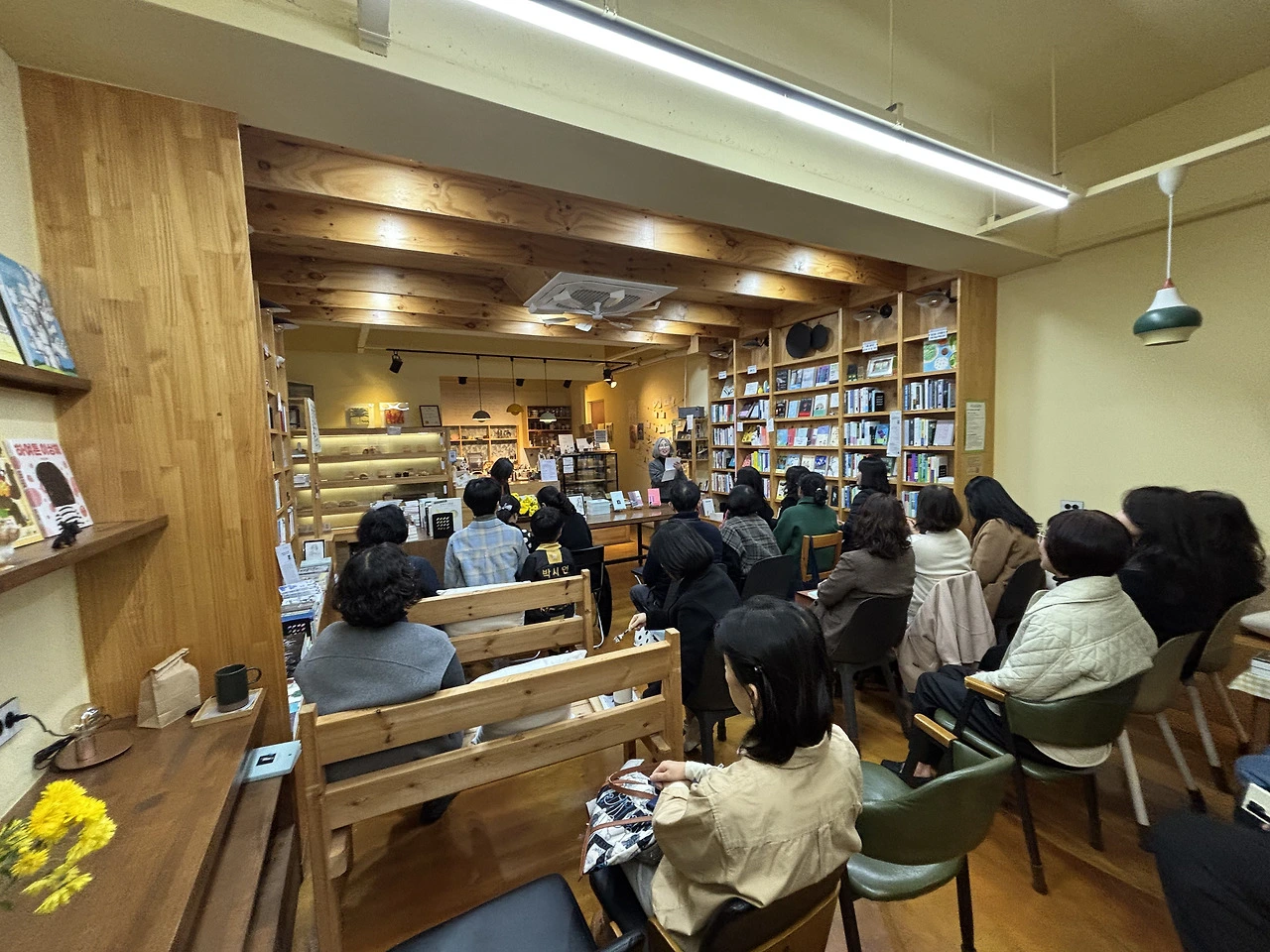 노년은 기본적으로 외로운 것이다. 다만 가족의 희생없이는 노인의 돌봄이 불가능한 것이 한국사회의 심각한 사회문제라고 본다. 자신의 어머니와 함께 오신 모녀가 두 커플 계셨다. 어머님들께서도 책을 잘 읽었다 하셨고 평상시에도 죽음에 대해서 이야기를 나누곤 했다고 한다. 사람들은 삶만이 디폴트라고 생각한다. 늙음과 죽음또한 삶의 일부분이라고 함께 생각해 보았으면 한다. 죽음을 일상으로 가져와서 충분히 고민하고 사유하고 대화를 나누다보면 지금 이 순간 내가 어떻게 살아야 하는지 답을 찾게 될수도 있다.(그 사유가 <지지않는 하루>에 잘 나와 있다) SNS에 보면 50대 60대같지 않은 늘씬한 몸매와 얼굴을 가진 사람이 나이 들어보이지 않음에 상당히 자부심을 가지고 올리는 릴스 영상들을 보곤 한다. 늙고 주름지는 것을 너무나도 두려워하는 한국의 문화현상이 아닌가 싶어 씁슬하다. 작가님은 글을 쓰는 것이 애도였다고 하고 어떤 독자님은 책을 읽는 것이 애도였다고 했다. 북토크에는 자크르의 충성고객외에 많은 분들이 오셨는데 그 중에는 죽음을 공부하는 모임멤버들도 함께오셔서 참 좋은 모습이다라고 생각을 했다.