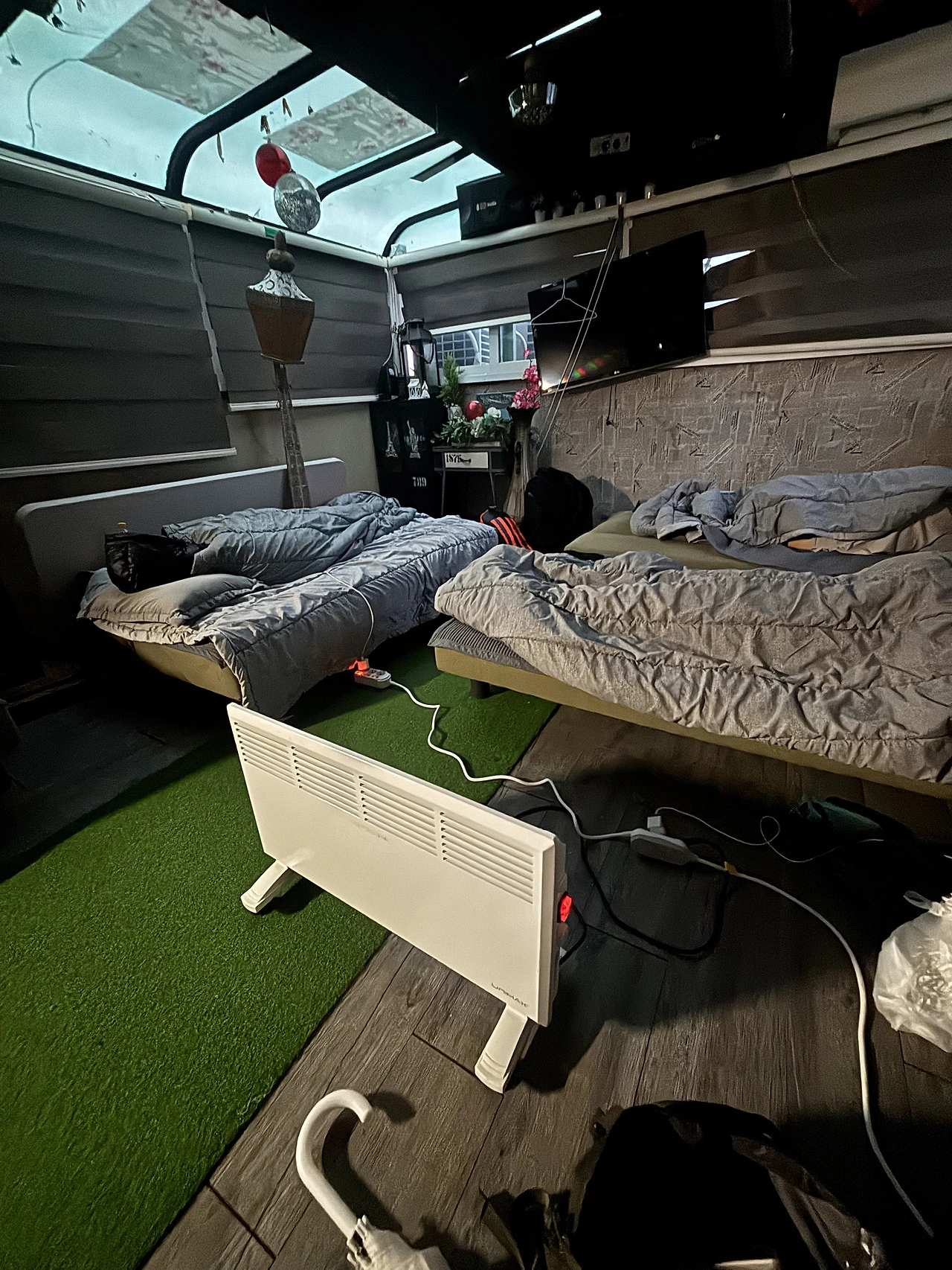 어제 새벽에 자고 있는데 술취한 친구를 데리고 들어오는 무리의 소리가 들렸다. 한 사람이 술이 많이 취해서 어디에 쎄개 부딪히는 바람에 나도 깜짝놀란 시늉을 했더니 부축한 두 사람이 내게 죄송합니다라고 말했다. 그리곤 술취한 친구를 침대에 눕히곤 자기들끼로 목소리를 낮춰서 영어로 쏼라쏼라 하더니 둘은 내려갔다. 내가 묵은 곳은 7층의 옥탑방 같은 허름한 공간에 침대 비스무리한 거 다섯개를 둔 공간이었다. 외풍이 심해 공기는 차가운 도미토리(?)였다. 이걸 도미토리라고 말해야 하는건지. 한 청년 손님은 이런 숙소는 첨 봤다는 듯이 짜증을 누르는 목소리로 관리자와 통화하고 숙소를 옮기기도 했었다.