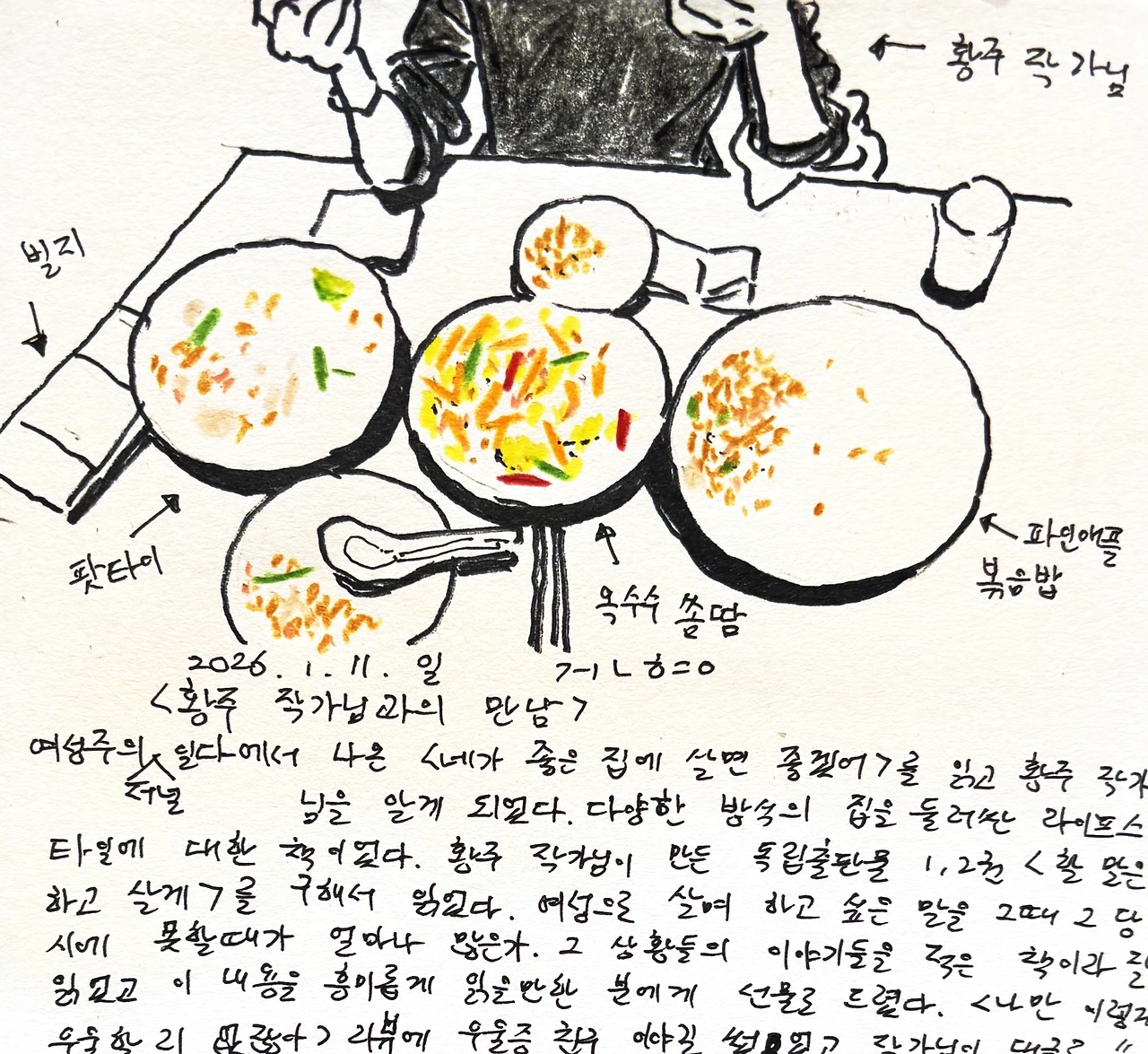 여성주의 저널 일다에서 나온 <네가 좋은 집에 살면 좋겠어>를 읽고 황주 작가님을 알게 되었다. 다양한 방식의 집을 둘러싼 라이프스타일에 대한 책이었다. 황주 작가님이 만든 독립출판물 1, 2권 <할 말은 하고 살게>를 구해서 읽었다. 여성으로 살며 하고 싶은 말을 그때 그 당시에 못할때가 얼마나 많은가. 그 상황들의 이야기들을 적은 책이라 잘 읽었고 이 내용을 흥미롭게 읽을만한 분에게 선물로 드렸다. <나만 이렇게 우울할 리 없잖아> 리뷰에 우울증 친구 이야길 썼었고, 작가님이 댓글로 “저도 우울증 친구가 있으면 좋겠어요” 하셨다. 그래서 저랑 우울증 친구를 해요 해서 약속을 잡았었다. 그런데, 작가님에게 가족같은 고양이 봉이씨가 갑자기 위급해지는 바람에 그 약속이 여러번 엇갈리고 밀렸다. 고양이 봉이씨를 애도하는 여행기를 매거진 브릭스에 연재했고, 다섯번째 마지막 글이 남았다고 하셨다. 나를 만난 날 그 원고를 마감하고 오셨다고. 봉이씨 장례를 잘 치르고 시간이 지나서 작가님에게서 다시 연락이 왔고 우리는 위치상 중간 지점인 부산 전포동에서 만났다. 식도락이 있으신 작가님이 타이 음식점을 검색해 찾아주셔서 팟타이, 파인애플 볶음밥, 옥수수 쏨땀을 맛있게 먹으며 길게 이야기 나누었다. 나를 만나러 간다고 지인들에게 이야기 하는데 나를 아는 분들이 있었다며 우린 신기해하며 웃었다. ‘문학의 곳간’ 독서모임을 소개해드렸더니 참여해보고 싶다고 해서 모임지기 연락처를 알려드리고 헤어졌다.