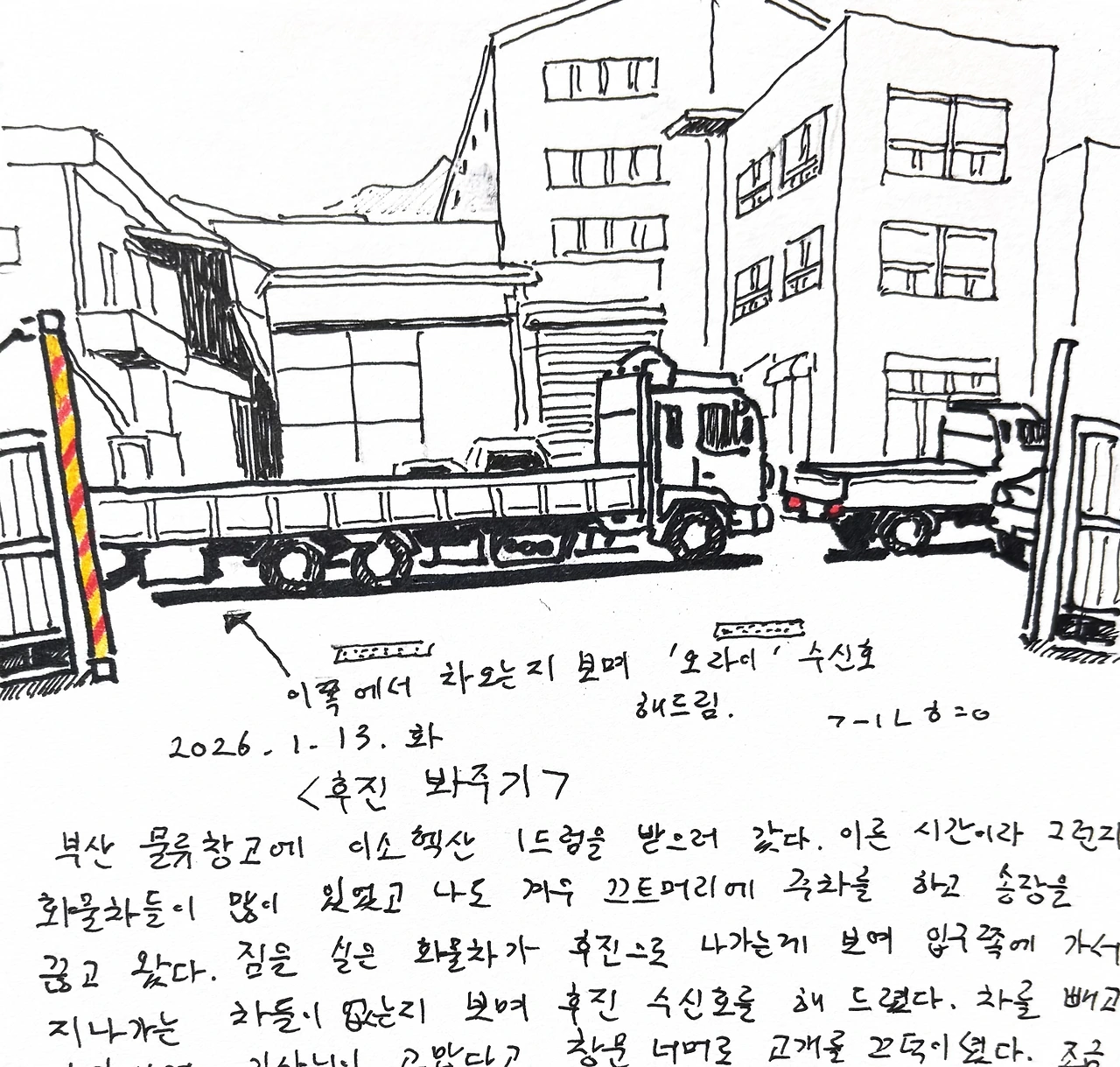 부산 물류창고에 이소헥산 1드럼을 받으러 갔다. 이른 시간이라 그런지 화물차들이 많이 있었고 나도 겨우 끄트머리에 주차를 하고 송장을 끊고 왔다. 짐을 실은 화물차가 후진으로 나가는게 보여 입구쪽에 가서 지나가는 차들이 없는지 보며 후진 수신호를 해 드렸다. 차를 빼고 나가시며 기사님이 고맙다고 창문너무로 고개를 끄덕이셨다. 조금 있으니 또 다른 화물차가 후진으로 차를 빼고 있었고 또 입구쪽으로 나가 ‘오라이 오라이’ 손짓을 했다. 이번 기사님은 창문을 내리며 “아이고, 고맙습니다~” 하고 인사를 하셨고, 나도 “좋은 하루 되십시요” 인사했다. 차 후진을 봐주고 고맙다고 말 듣는 것도 기분 좋고, 그 분들도 큰 차 후진하는걸 봐주니 고마웠을 것이다. 누가 시킨 것도 아니고 그냥 내가 큰 화물차를 후진할때 누가 뒤에서 차가 오는지 봐주면 고마울 것 같아서 하는 것 뿐이다. 처음 보는 기사님들에게도 너스레를 떨며 말을 붙이고 인사를 하는 것도 좋은 마음을 나누면 서로가 기분이 좋기 때문이다. 세상을 살만하게 만드는 것은 특별한 것이 아니라 이런 작은 마음들이라고 믿는다.