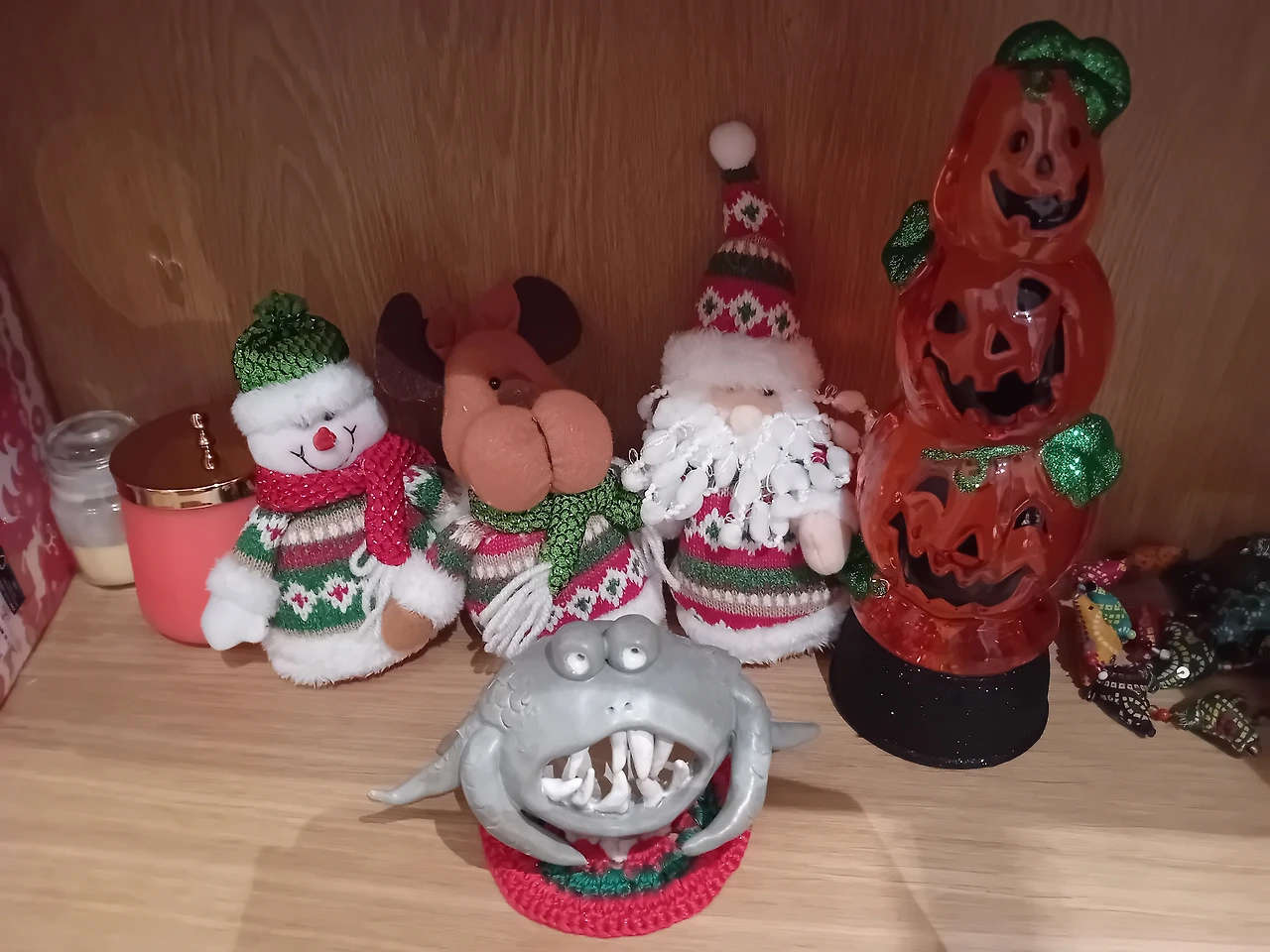 집에 데리고 온 몬스터는 할로윈과 크리스마스 장식들에 합류했다. 과일 그릇은 식탁에 과일들과 같이 올려놨다. 좀 더 크게 만들 걸 그랬나 보다. 과일들이 절반도 안 들어간다. 그래도 그럴싸하다.