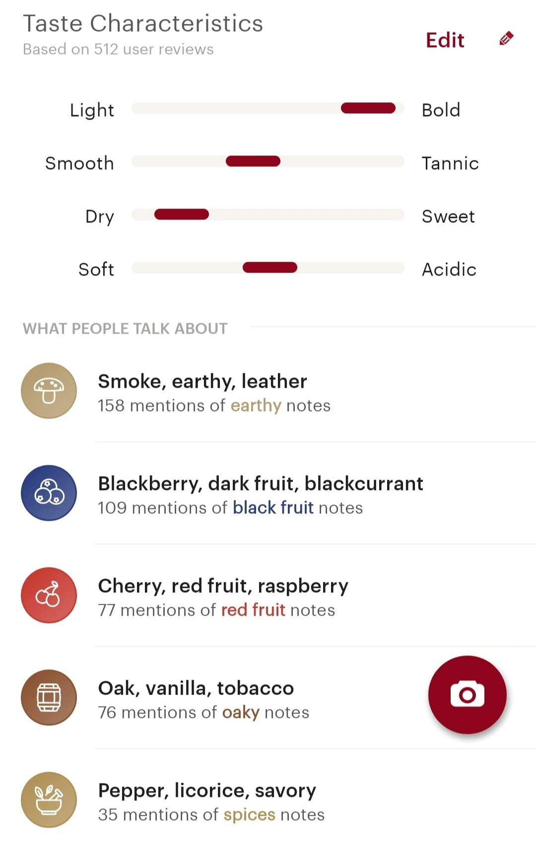 맛은 Vivino는 극한의 bold라고 해놨지만 내 입에는 그 정도는 아닌 거 같다. Smooth 하다고 되어 있지만 나한테는 더 tannic 한 느낌이다. Dry 한 편이지만 단맛이 아예 없는 건 아니고, soft와 acidic 중간이라고 되어 있는데 나한텐 산미가 더 강하게 느껴진다. 스모키한 오크향 블랙베리 맛이긴 한데 체리나 라즈베리보다는 오렌지향 같은 상큼함이 더 있지 않나 싶다. 바닐라나 페퍼 그 외 기타 등등 나머지는 잘 모르겠다.