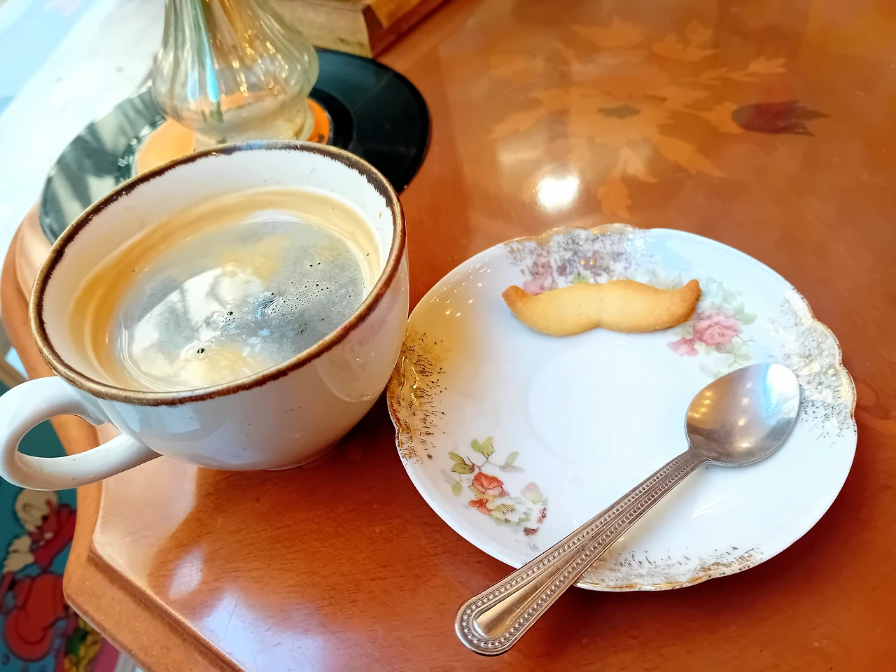 커피에도 수염 모양 비스킷을 주는 등 디테일이 깜찍하다. 커피는 내 입맛에는 산미가 좀 센 거 같다.