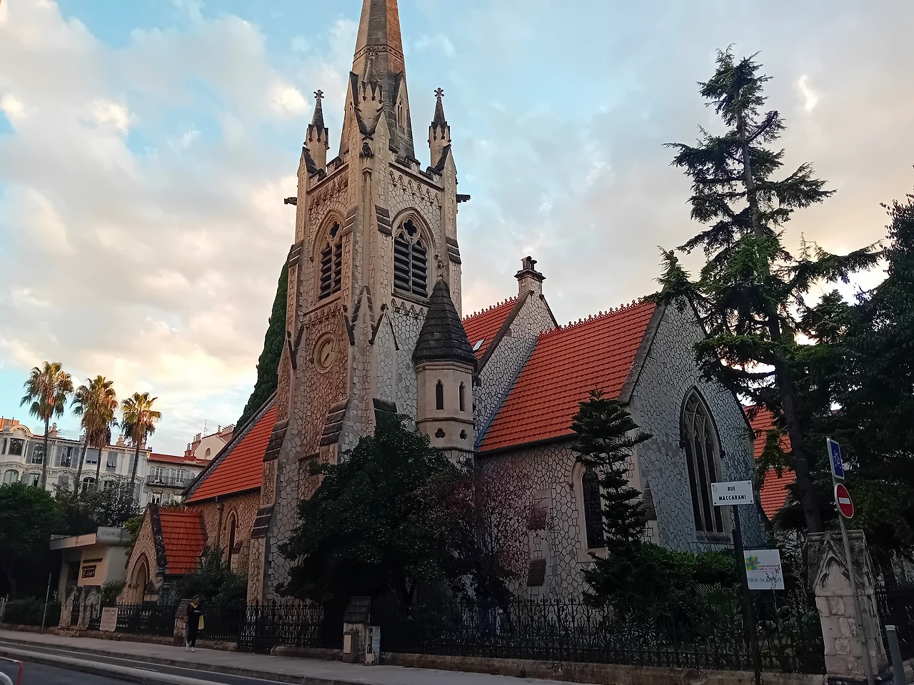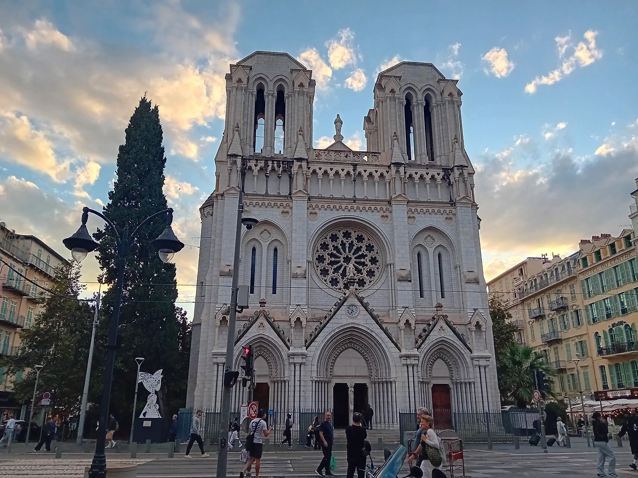 숙소에서 좀 쉬다가 저녁 먹으러 갔다. 식당에 가는 길에 대성당 Basilique Notre-Dame de l’Assomption도 있고, 트램이 다니는 넓은 길도 있고, 아담한 교회 Église reformée de Nice도 있다.